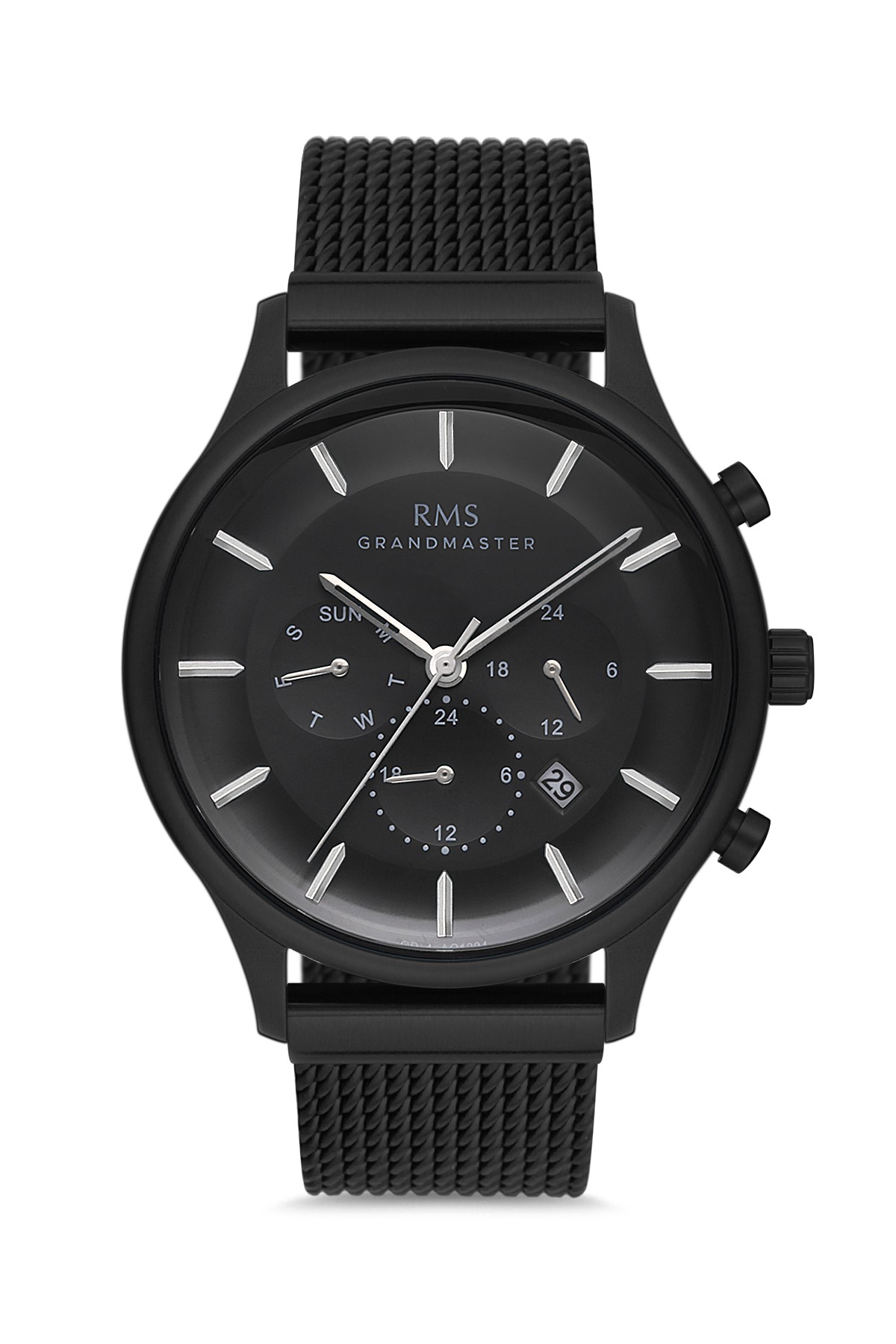Erkek - Multi̇ Fonksi̇yon - Si̇yah - Si̇yah - Çeli̇k Örme Kordon - 3 Atm - Sertleşti̇ri̇lmi̇ş Mi̇neral Cam - Grand Romanson