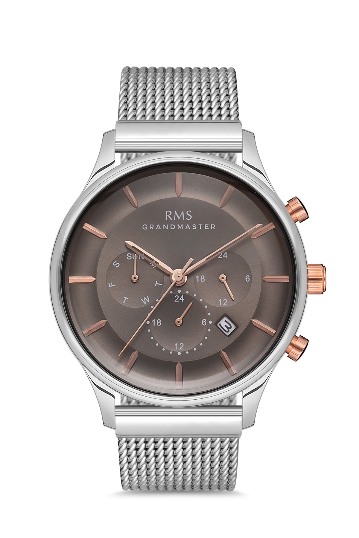 Erkek - Multi̇ Fonksi̇yon - Rose Beyaz - Gri̇ - Çeli̇k Örme Kordon - 3 Atm - Sertleşti̇ri̇lmi̇ş Mi̇neral Cam - Grand Romanson