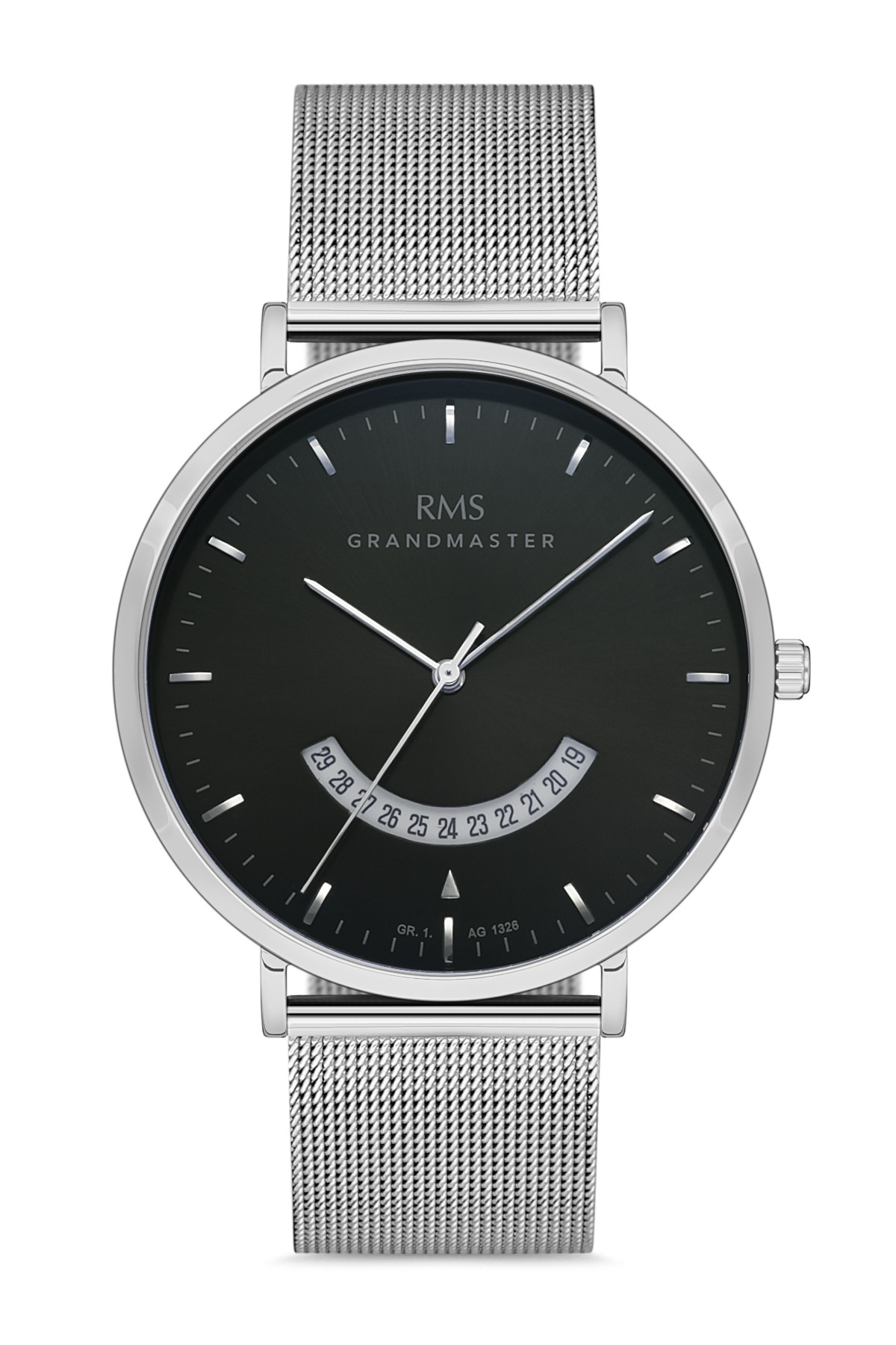 Erkek - Takvi̇mli̇ - Gümüş - Si̇yah - Çeli̇k Örme Kordon - 3 Atm - Sertleşti̇ri̇lmi̇ş Mi̇neral Cam - Grand Romanson