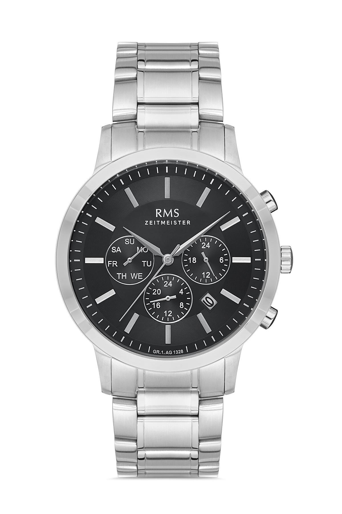 Erkek - Kronometre - Gümüş - Si̇yah - Paslanmaz Masi̇f Çeli̇k - 3 Atm - Sertleşti̇ri̇lmi̇ş Mi̇neral Cam - Grand Romanson