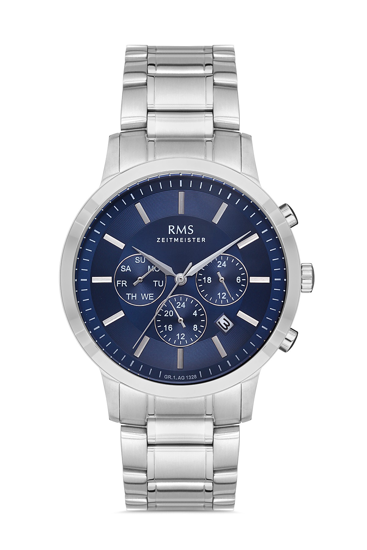Erkek - Kronometre - Gümüş - Mavi̇ - Paslanmaz Masi̇f Çeli̇k - 3 Atm - Sertleşti̇ri̇lmi̇ş Mi̇neral Cam - Grand Romanson
