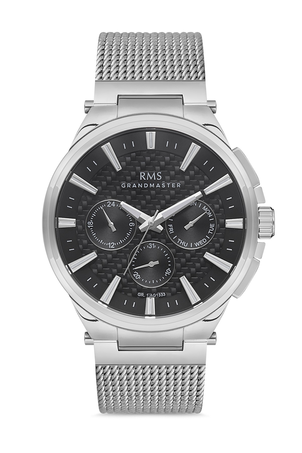 Erkek - Multi̇ Fonksi̇yon - Gümüş - Si̇yah - Çeli̇k Örme Kordon - 3 Atm - Sertleşti̇ri̇lmi̇ş Mi̇neral Cam - Grand Romanson