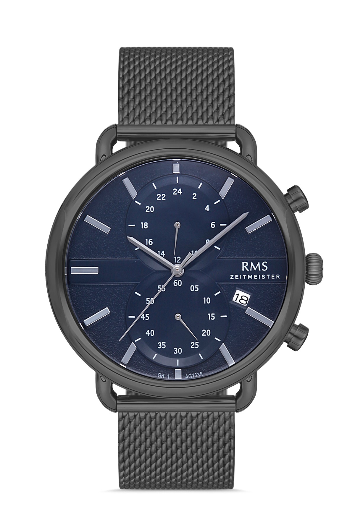 Erkek - Multi̇ Fonksi̇yon - Gun - Mavi̇ - Çeli̇k Örme Kordon - 3 Atm - Sertleşti̇ri̇lmi̇ş Mi̇neral Cam - Grand Romanson - 44