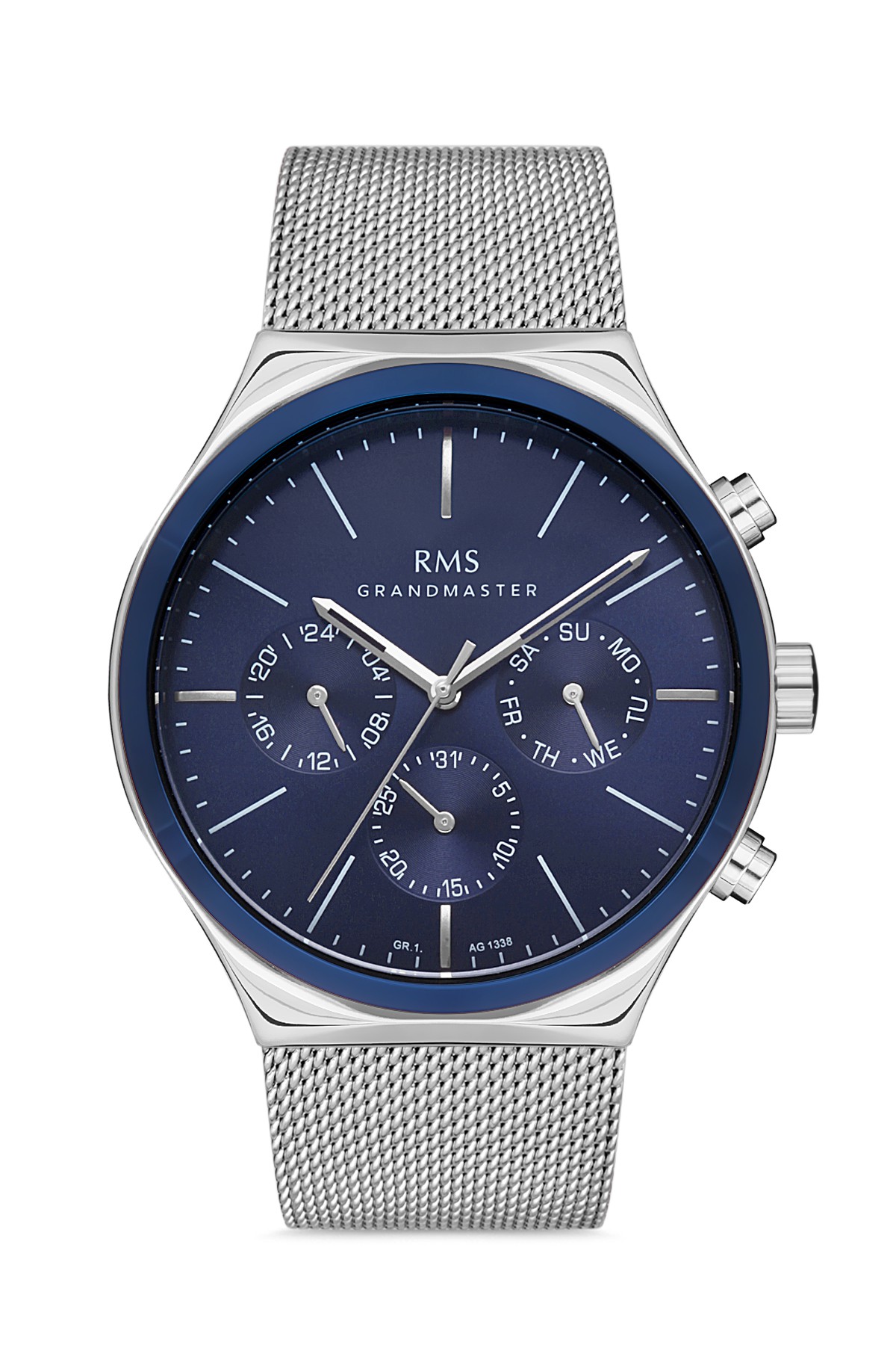 Erkek - Kronometre - Gümüş Mavi̇ - Mavi̇ - Çeli̇k Örme Kordon - 3 Atm - Sertleşti̇ri̇lmi̇ş Mi̇neral Cam - Grand Romanson