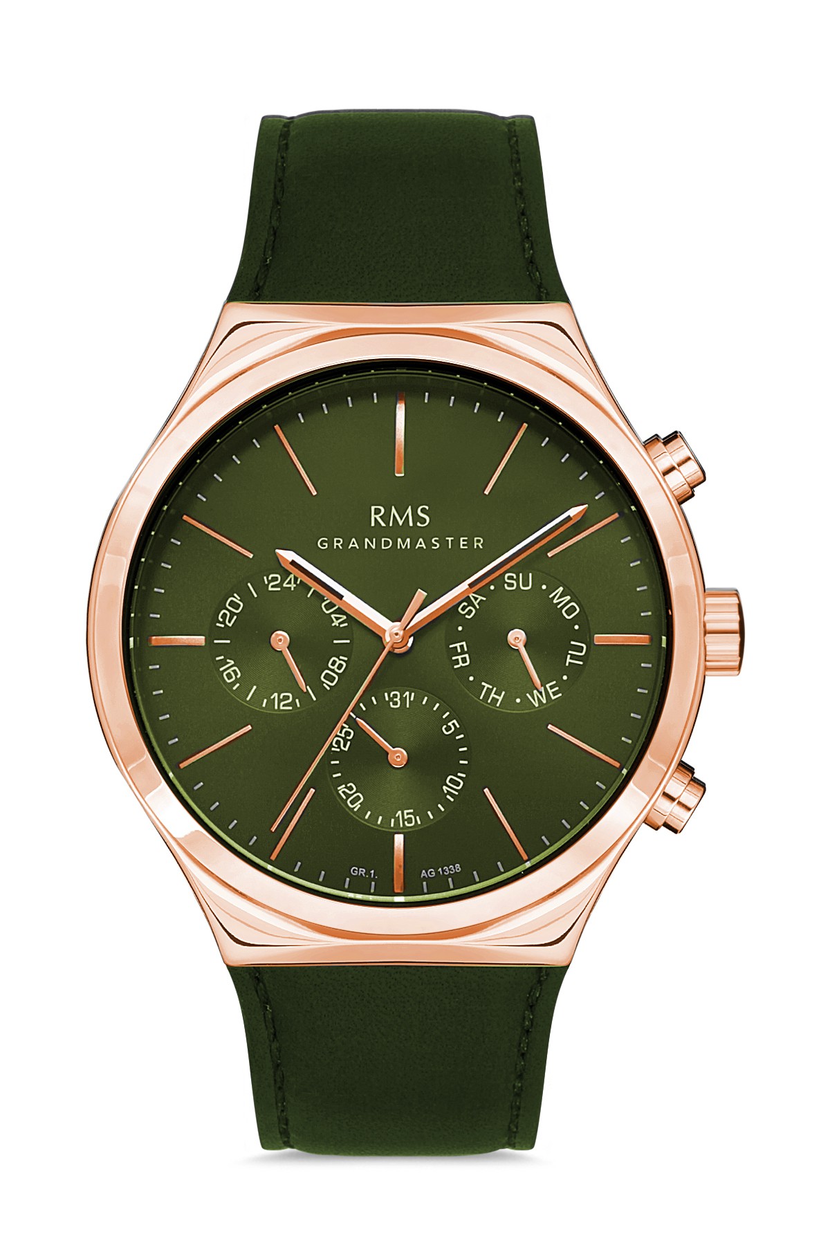 Erkek - Multi̇ Fonksi̇yon - Rose - Yeşi̇l - Doğal Deri̇ Kordon - Yeşi̇l - 3 Atm - Sertleşti̇ri̇lmi̇ş Mi̇neral Cam - Grand Romanson