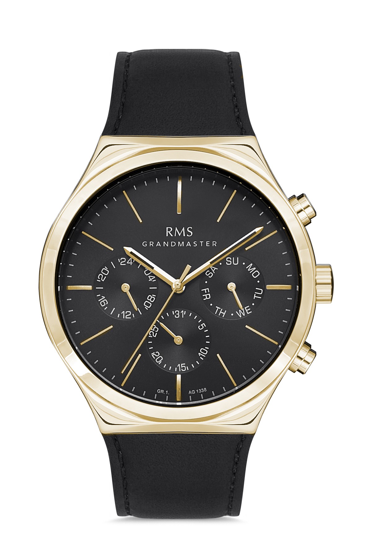 Erkek - Multi̇ Fonksi̇yon - Sari - Si̇yah - Doğal Deri̇ Kordon - Si̇yah - 3 Atm - Sertleşti̇ri̇lmi̇ş Mi̇neral Cam - Grand Romanson