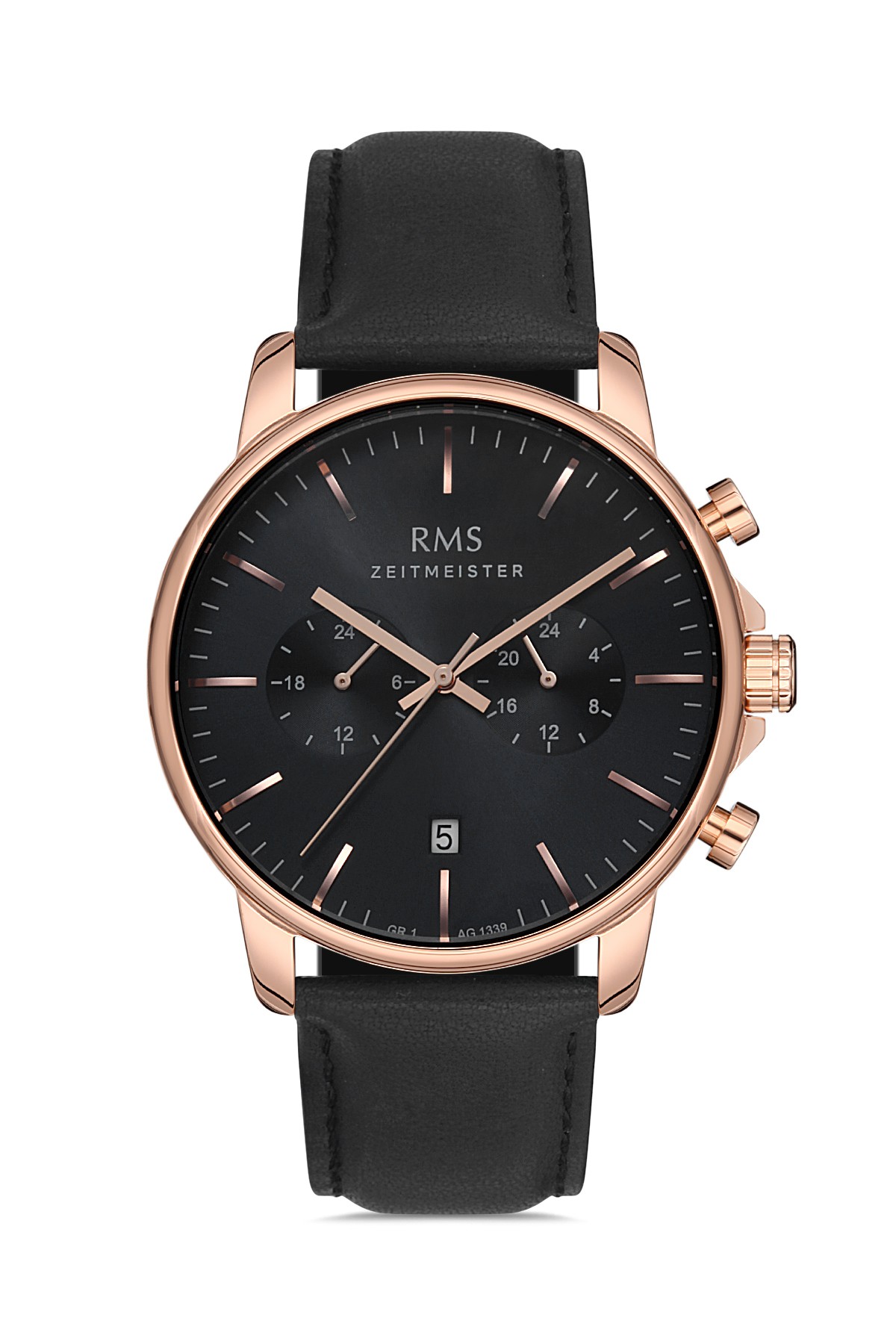 Erkek - Multi̇ Fonksi̇yon - Rose - Si̇yah - Doğal Deri̇ Kordon - Si̇yah - 3 Atm - Sertleşti̇ri̇lmi̇ş Mi̇neral Cam - Grand Romanson