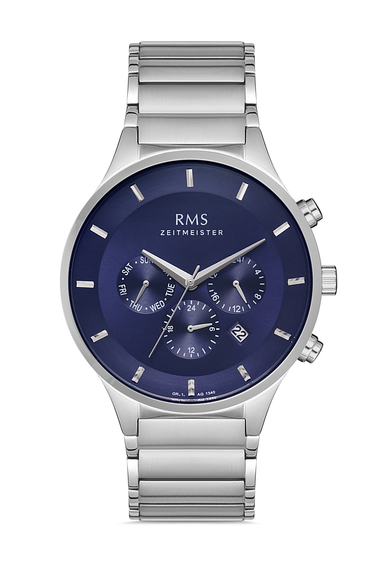 Erkek - Multi̇ Fonksi̇yon - Gümüş - Mavi̇ - Paslanmaz Masi̇f Çeli̇k - 3 Atm - Sertleşti̇ri̇lmi̇ş Mi̇neral Cam - Grand Romanson