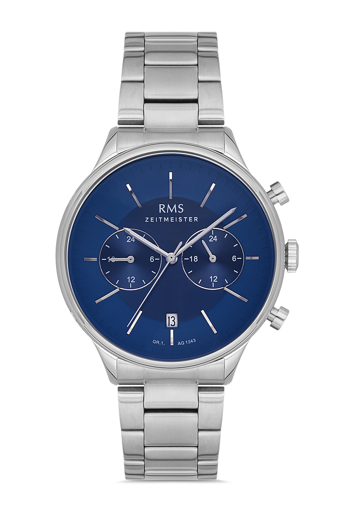 Erkek - Kronometre - Gümüş - Mavi̇ - Paslanmaz Masi̇f Çeli̇k - 3 Atm - Sertleşti̇ri̇lmi̇ş Mi̇neral Cam - Grand Romanson
