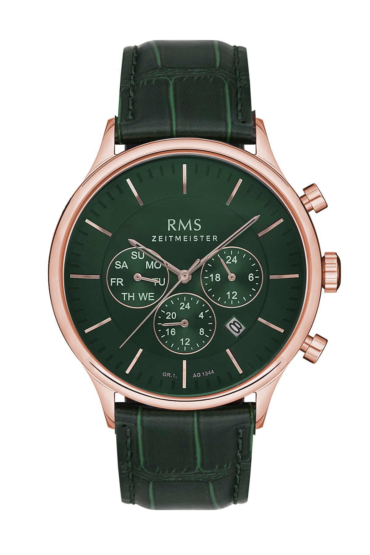 Erkek - Multi̇ Fonksi̇yon - Rose - Yeşi̇l - Doğal Deri̇ Kordon - Yeşi̇l - 3 Atm - Sertleşti̇ri̇lmi̇ş Mi̇neral Cam - Grand Romanson