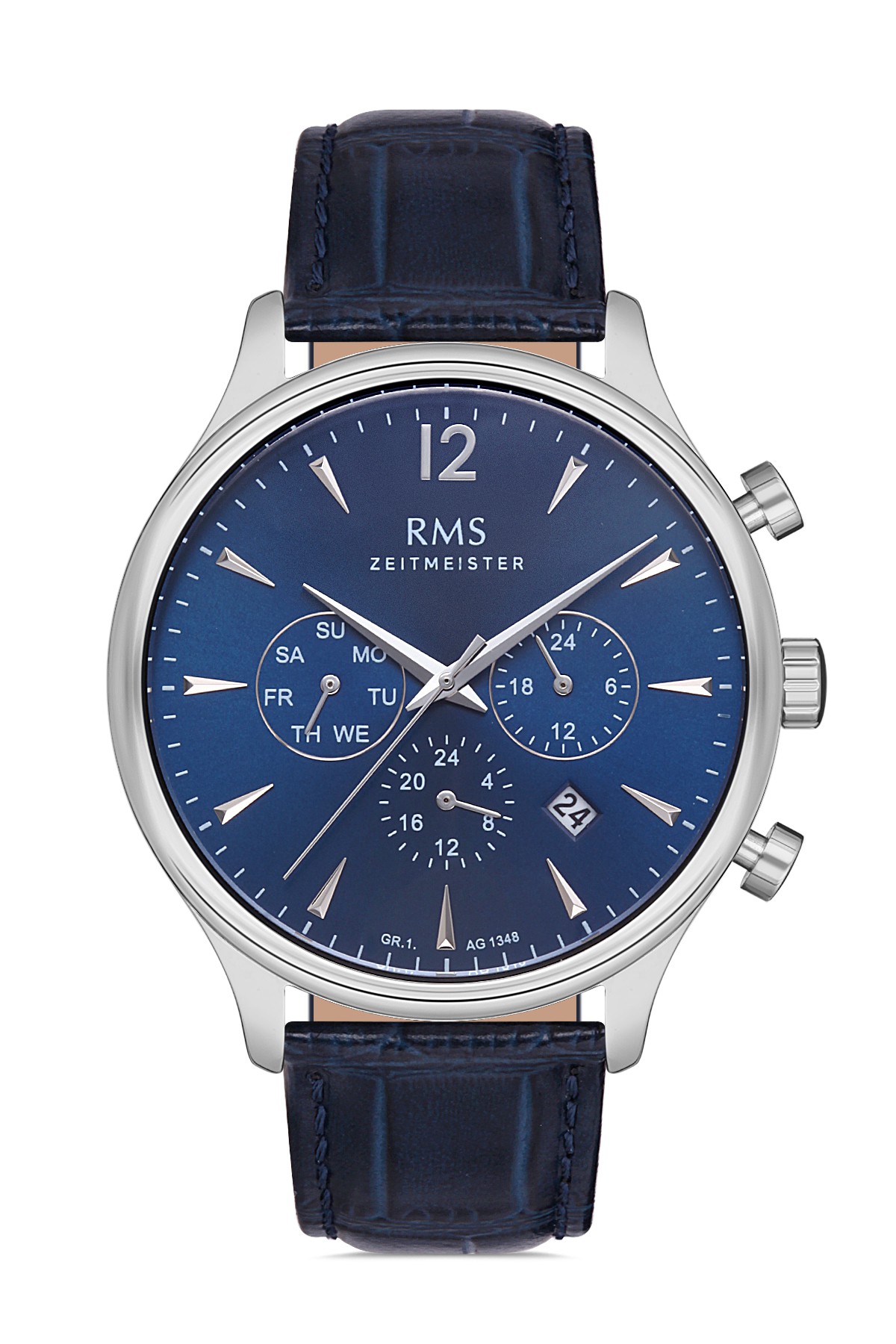 Erkek - Multi̇ Fonksi̇yon - Gümüş - Mavi̇ - Doğal Deri̇ Kordon - Mavi̇ - 3 Atm - Grand Romanson