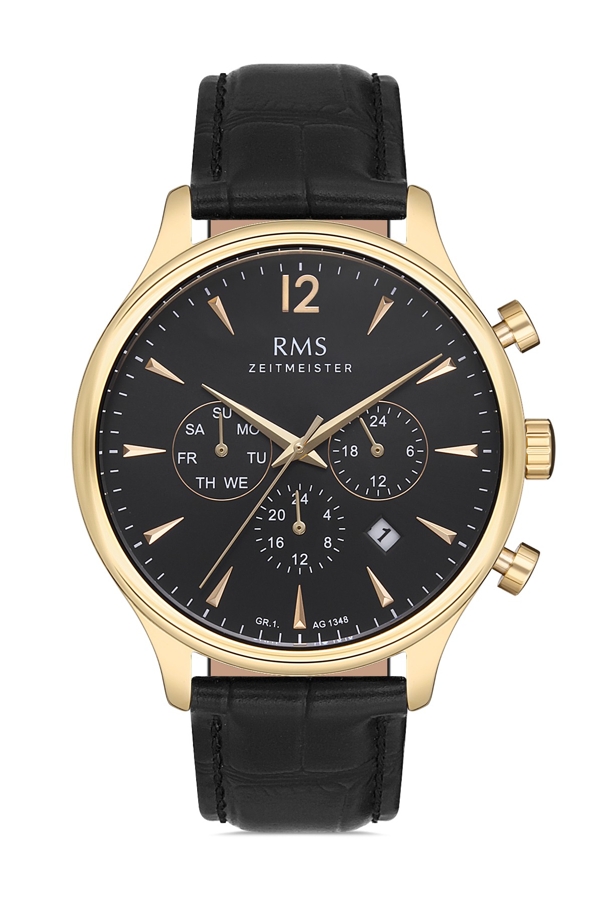 Erkek - Multi̇ Fonksi̇yon - Sari - Si̇yah - Doğal Deri̇ Kordon - Si̇yah - 3 Atm - Grand Romanson