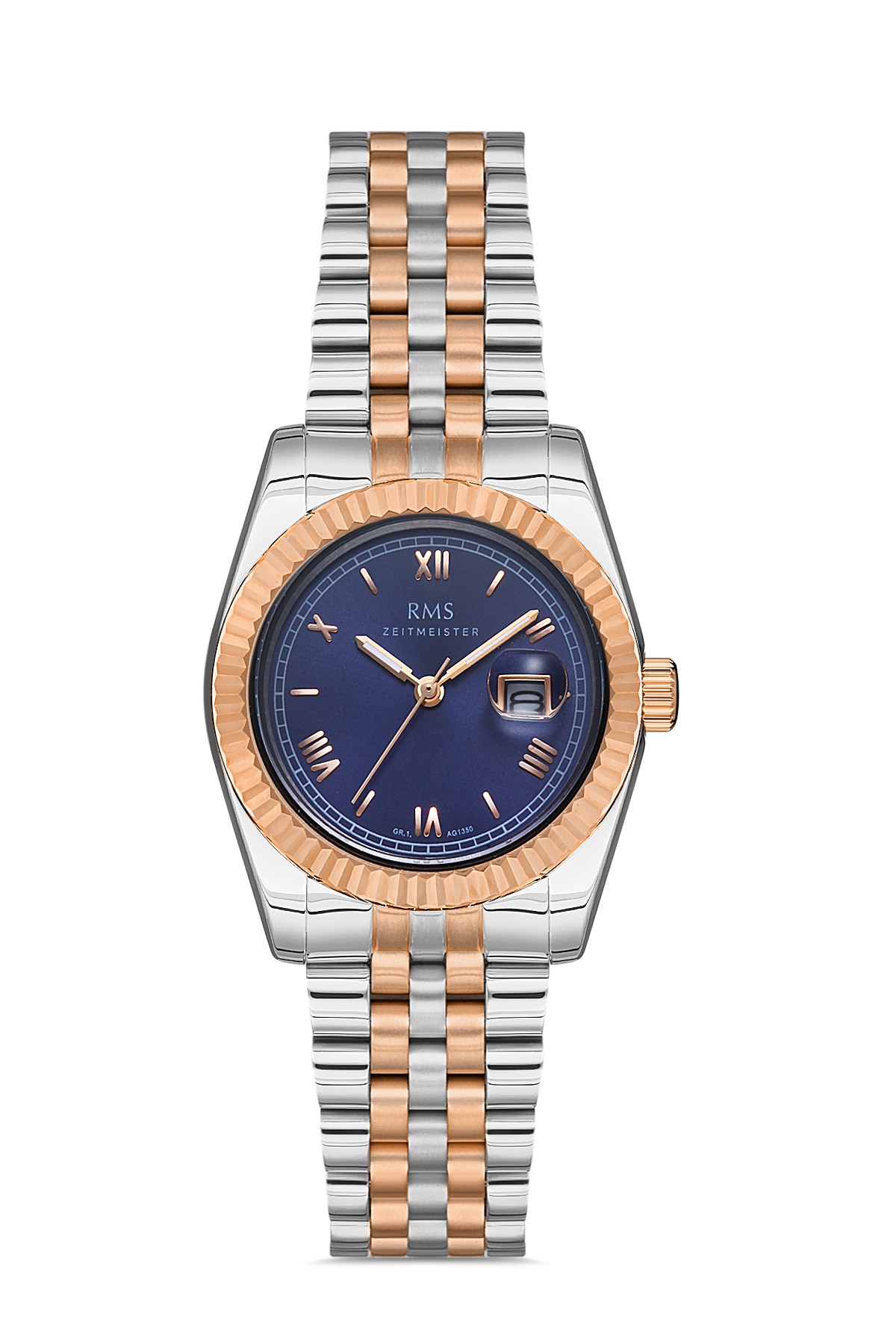 Kadın - Takvi̇mli̇ - Rose Beyaz - Mavi̇ - Paslanmaz Masi̇f Çeli̇k - 3 Atm - Sertleşti̇ri̇lmi̇ş Mi̇neral Cam - Grand Romanson