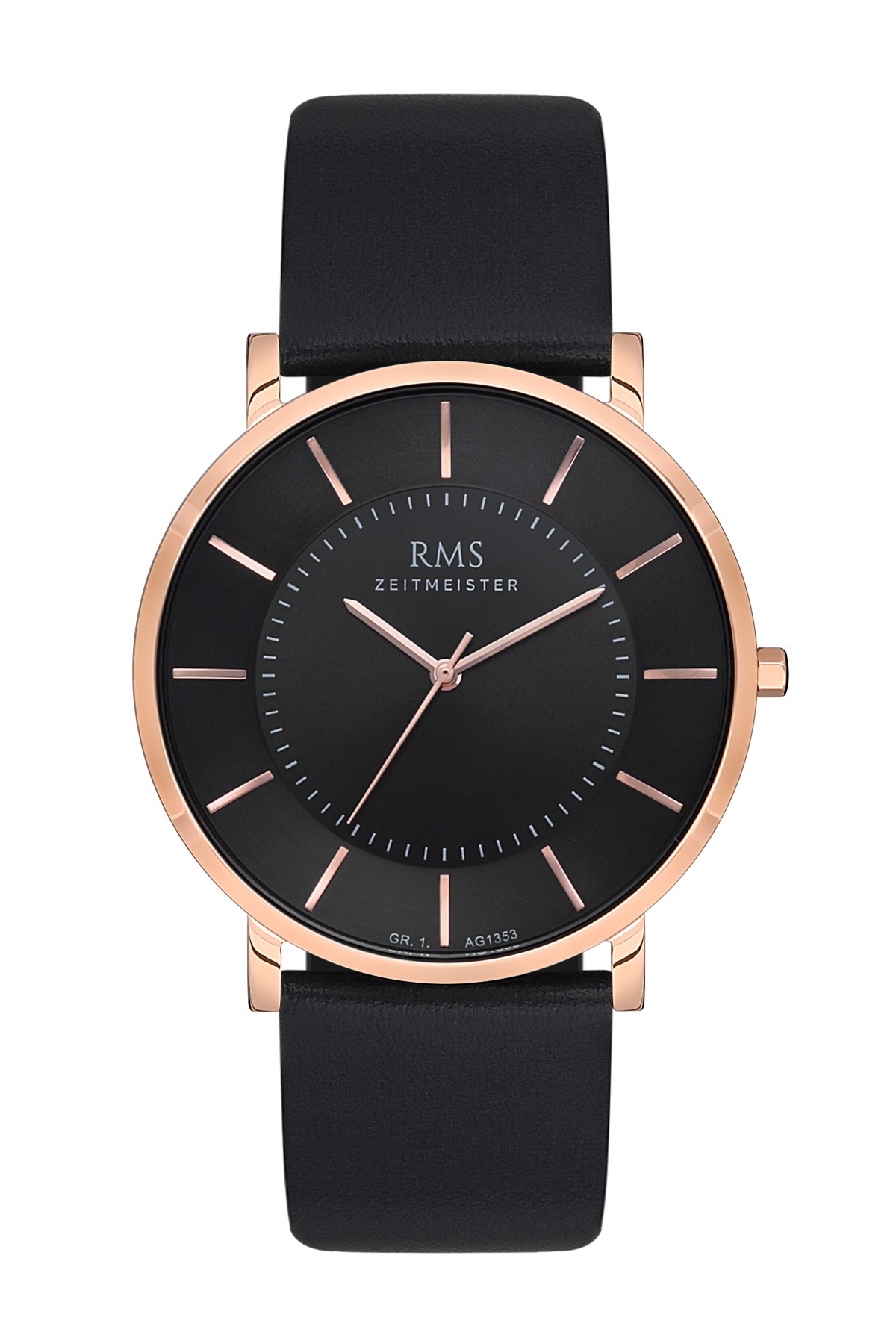 Erkek - Düz - Rose - Si̇yah - Doğal Deri̇ Kordon - Si̇yah - 3 Atm - Sertleşti̇ri̇lmi̇ş Mi̇neral Cam - Grand Romanson