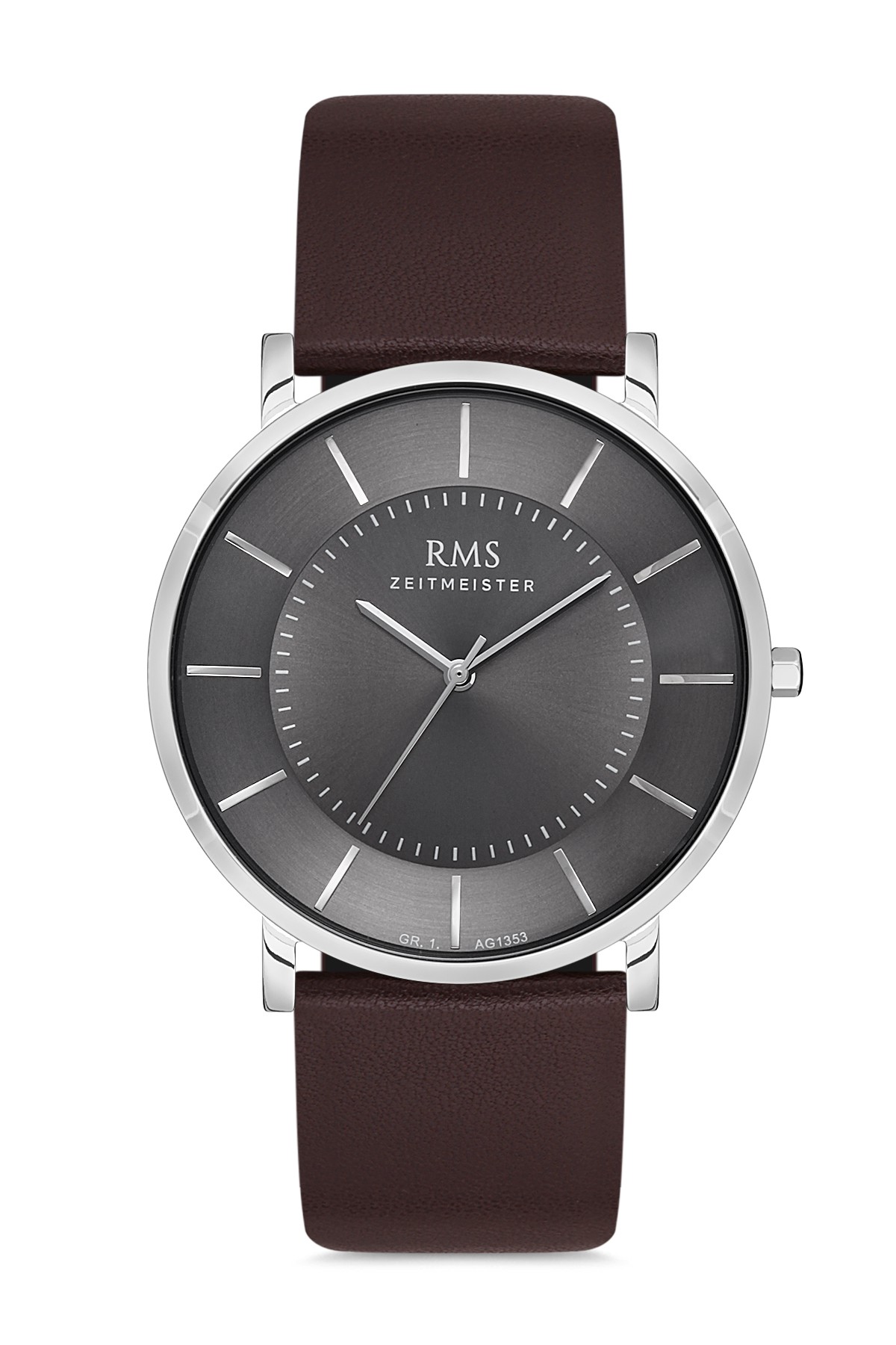 Erkek - Düz - Gümüş - Gri̇ - Doğal Deri̇ Kordon - Kahverengi̇ - 3 Atm - Sertleşti̇ri̇lmi̇ş Mi̇neral Cam - Grand Romanson