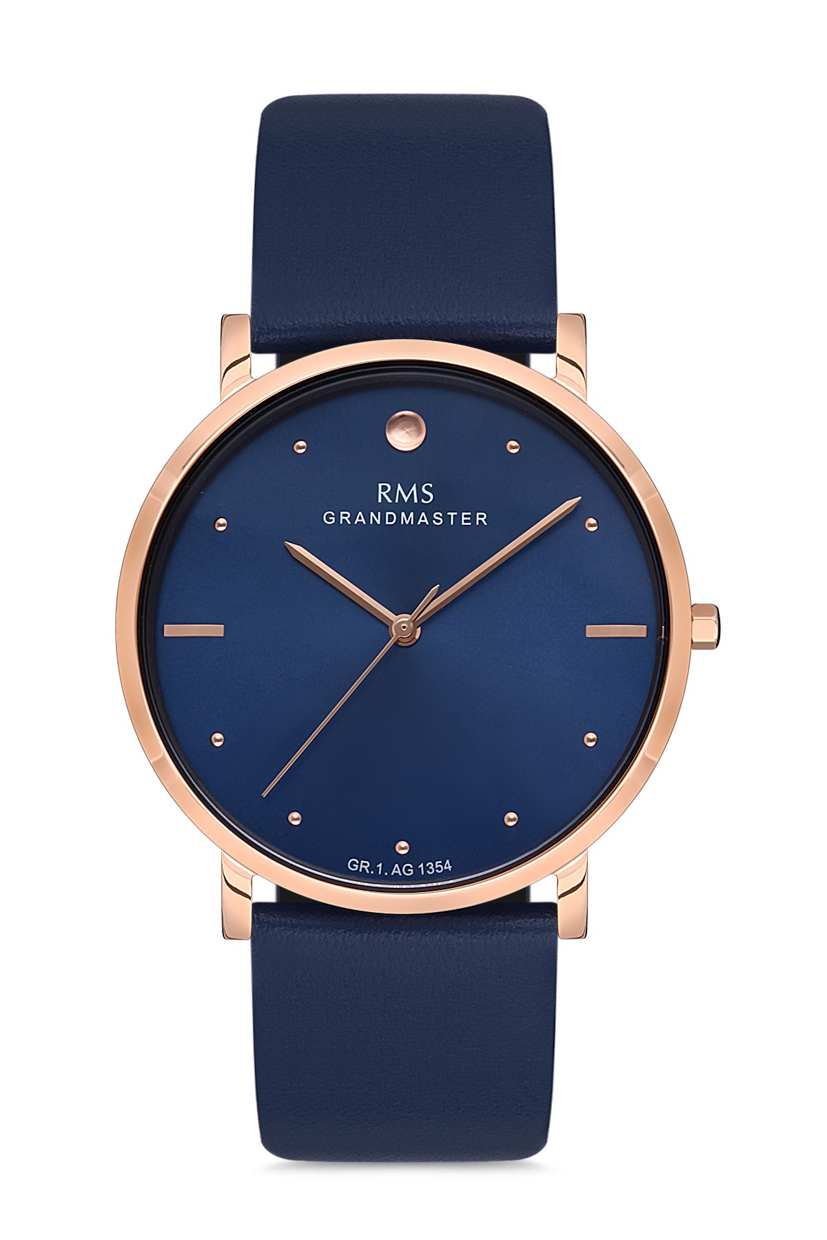 Erkek - Düz - Rose - Mavi̇ - Doğal Deri̇ Kordon - Mavi̇ - 3 Atm - Sertleşti̇ri̇lmi̇ş Mi̇neral Cam - Grand Romanson