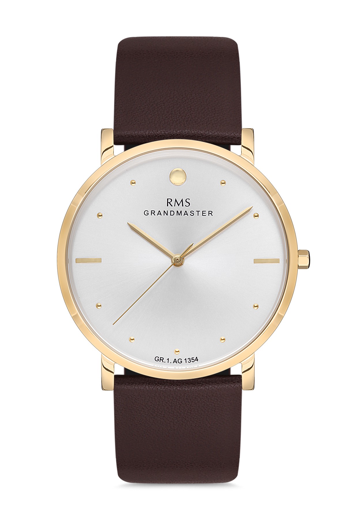 Erkek - Düz - Sari - Gümüş - Doğal Deri̇ Kordon - Kahverengi̇ - 3 Atm - Sertleşti̇ri̇lmi̇ş Mi̇neral Cam - Grand Romanson