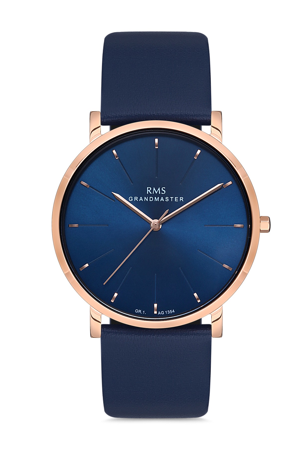 Erkek - Düz - Rose - Mavi̇ - Doğal Deri̇ Kordon - Mavi̇ - 3 Atm - Sertleşti̇ri̇lmi̇ş Mi̇neral Cam - Grand Romanson