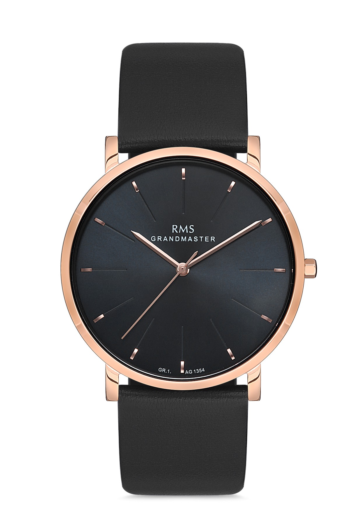 Erkek - Düz - Rose - Si̇yah - Doğal Deri̇ Kordon - Si̇yah - 3 Atm - Sertleşti̇ri̇lmi̇ş Mi̇neral Cam - Grand Romanson