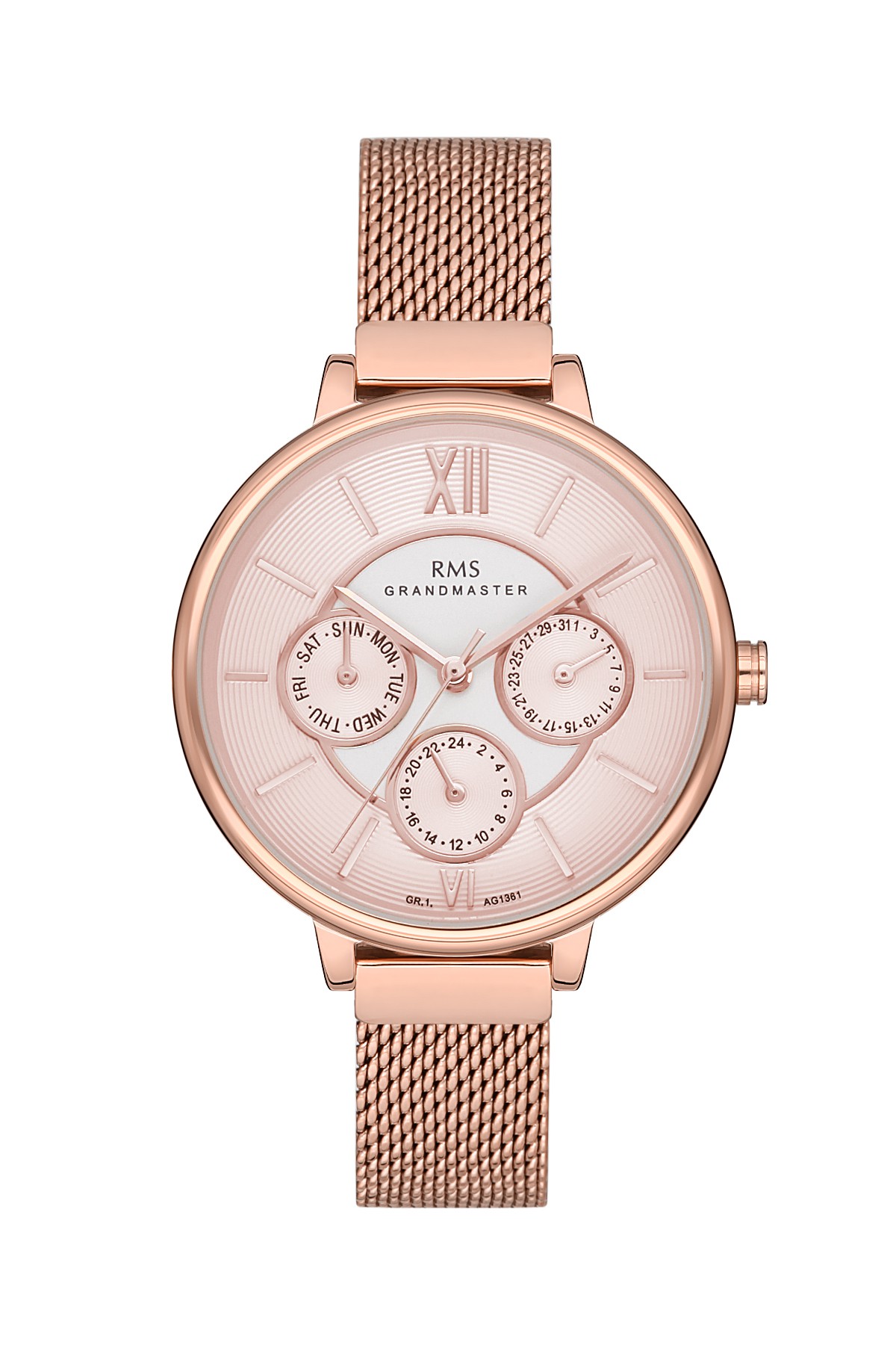 Kadın - Multi̇ Fonksi̇yon - Rose - Rose - Çeli̇k Örme Kordon - 3 Atm - Sertleşti̇ri̇lmi̇ş Mi̇neral Cam - Grand Romanson