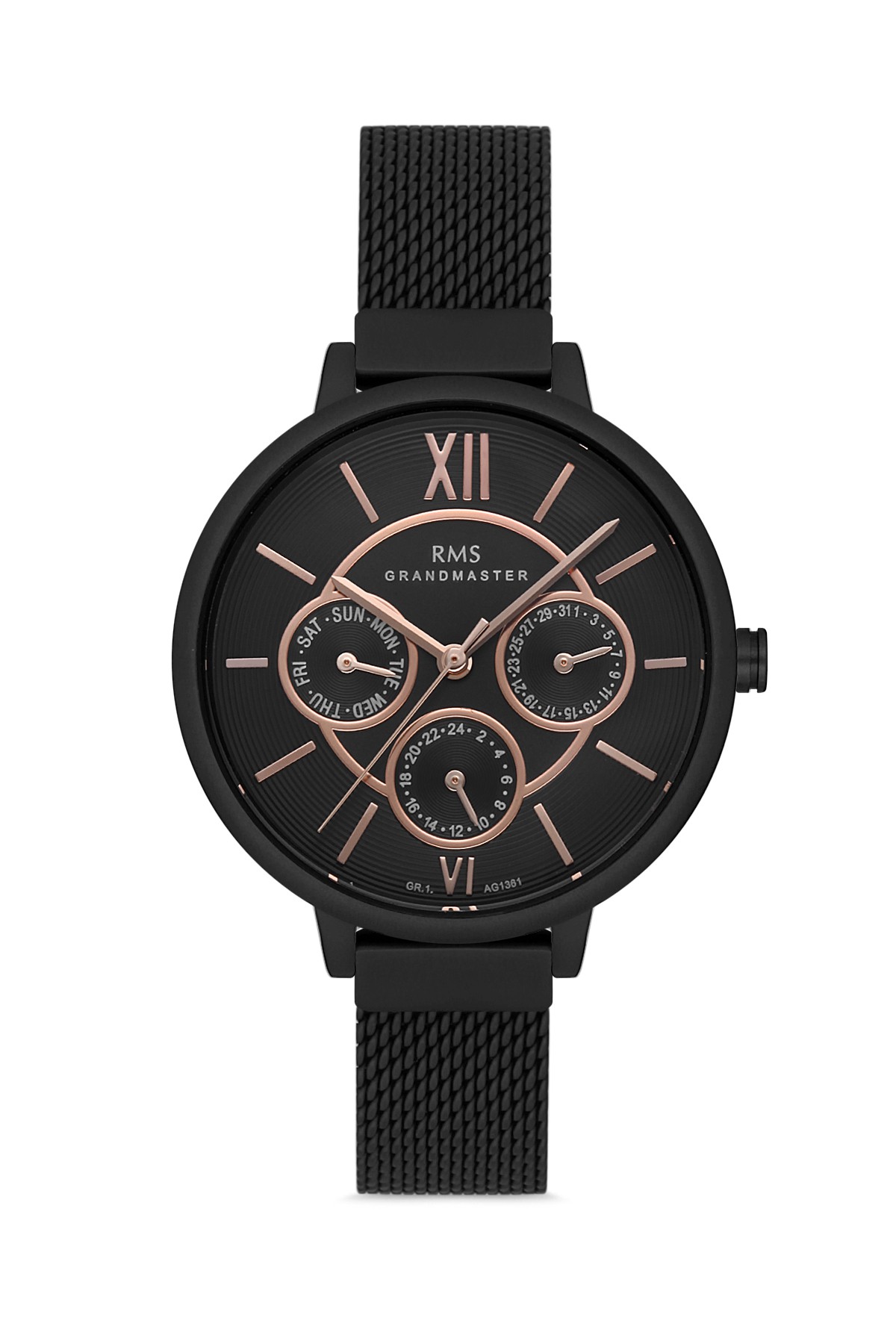 Kadın - Multi̇ Fonksi̇yon - Si̇yah - Si̇yah - Çeli̇k Örme Kordon - 3 Atm - Sertleşti̇ri̇lmi̇ş Mi̇neral Cam - Grand Romanson