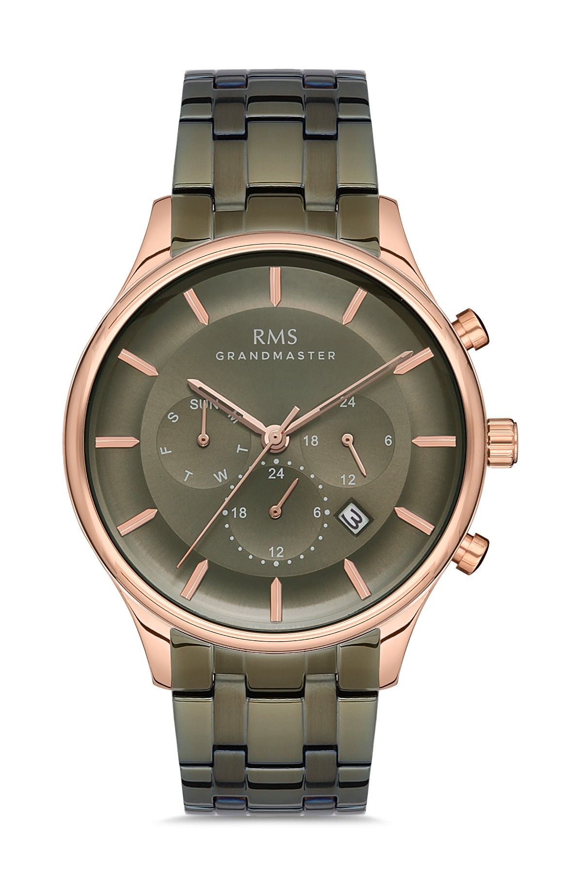 Erkek - Multi̇ Fonksi̇yon - Rose - Yeşi̇l - Paslanmaz Masi̇f Çeli̇k - 3 Atm - Sertleşti̇ri̇lmi̇ş Mi̇neral Cam - Grand Romanson
