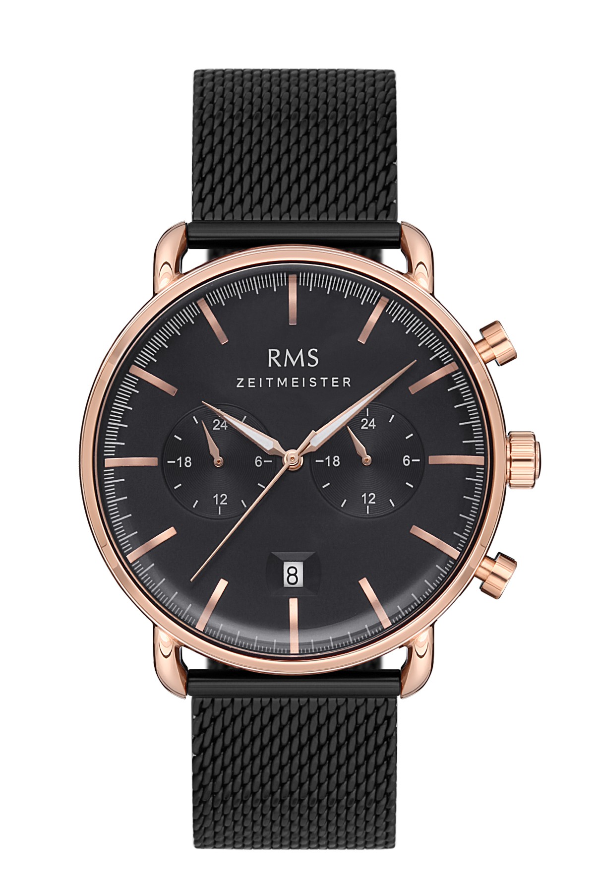 Erkek - Multi̇ Fonksi̇yon - Si̇yah - Si̇yah - Çeli̇k Örme Kordon - 3 Atm - Sertleşti̇ri̇lmi̇ş Mi̇neral Cam - Grand Romanson