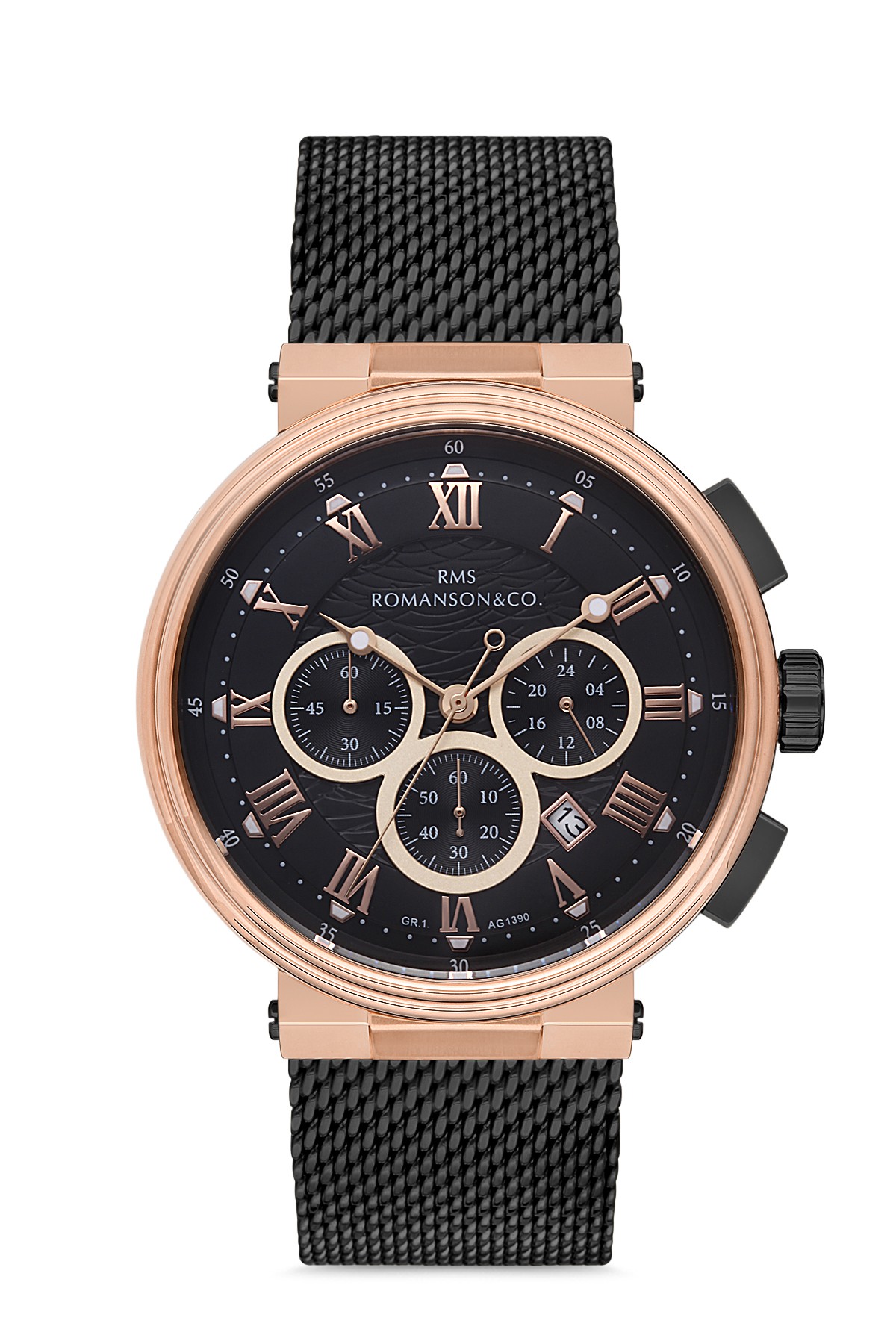 Erkek - Kronometre - Rose Si̇yah - Si̇yah - Çeli̇k Örme Kordon - 3 Atm - Sertleşti̇ri̇lmi̇ş Mi̇neral Cam - Grand Romanson