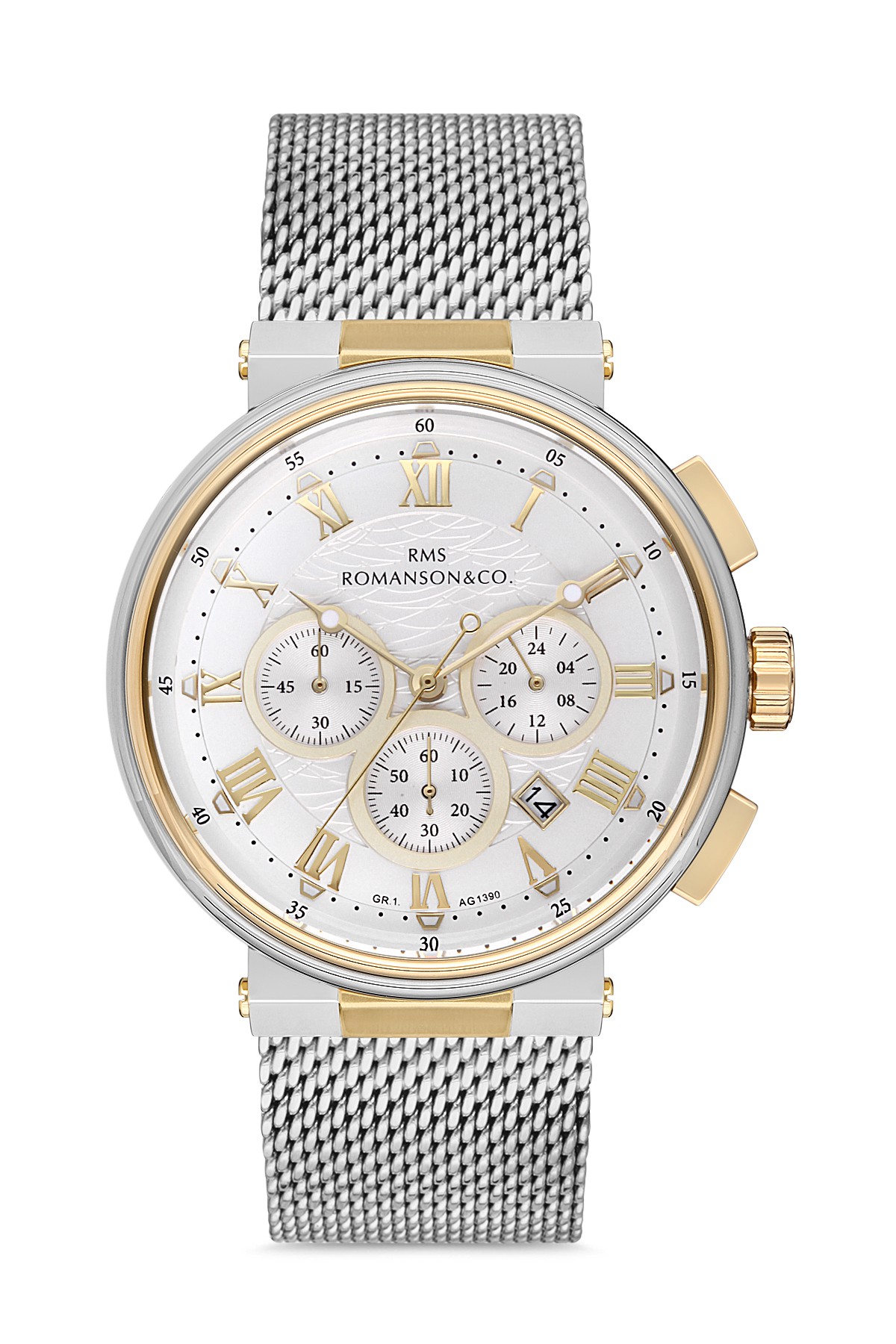 Erkek - Kronometre - Sari Beyaz - Gümüş - Çeli̇k Örme Kordon - 3 Atm - Sertleşti̇ri̇lmi̇ş Mi̇neral Cam - Grand Romanson