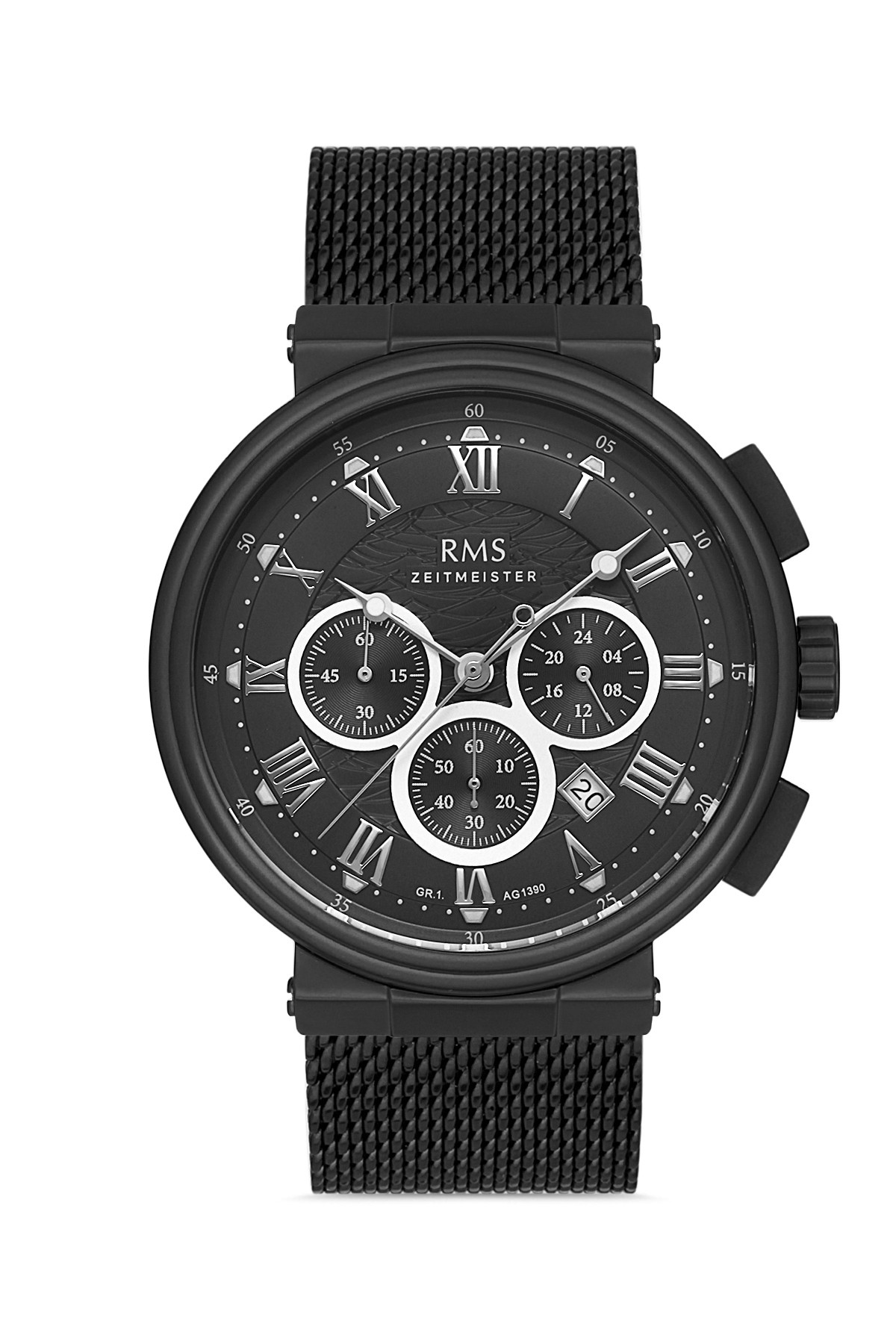 Erkek - Kronometre - Si̇yah - Si̇yah - Çeli̇k Örme Kordon - 3 Atm - Sertleşti̇ri̇lmi̇ş Mi̇neral Cam - Grand Romanson