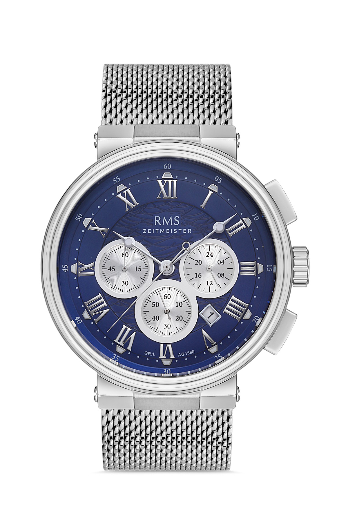 Erkek - Kronometre - Gümüş - Mavi̇ - Çeli̇k Örme Kordon - 3 Atm - Sertleşti̇ri̇lmi̇ş Mi̇neral Cam - Grand Romanson