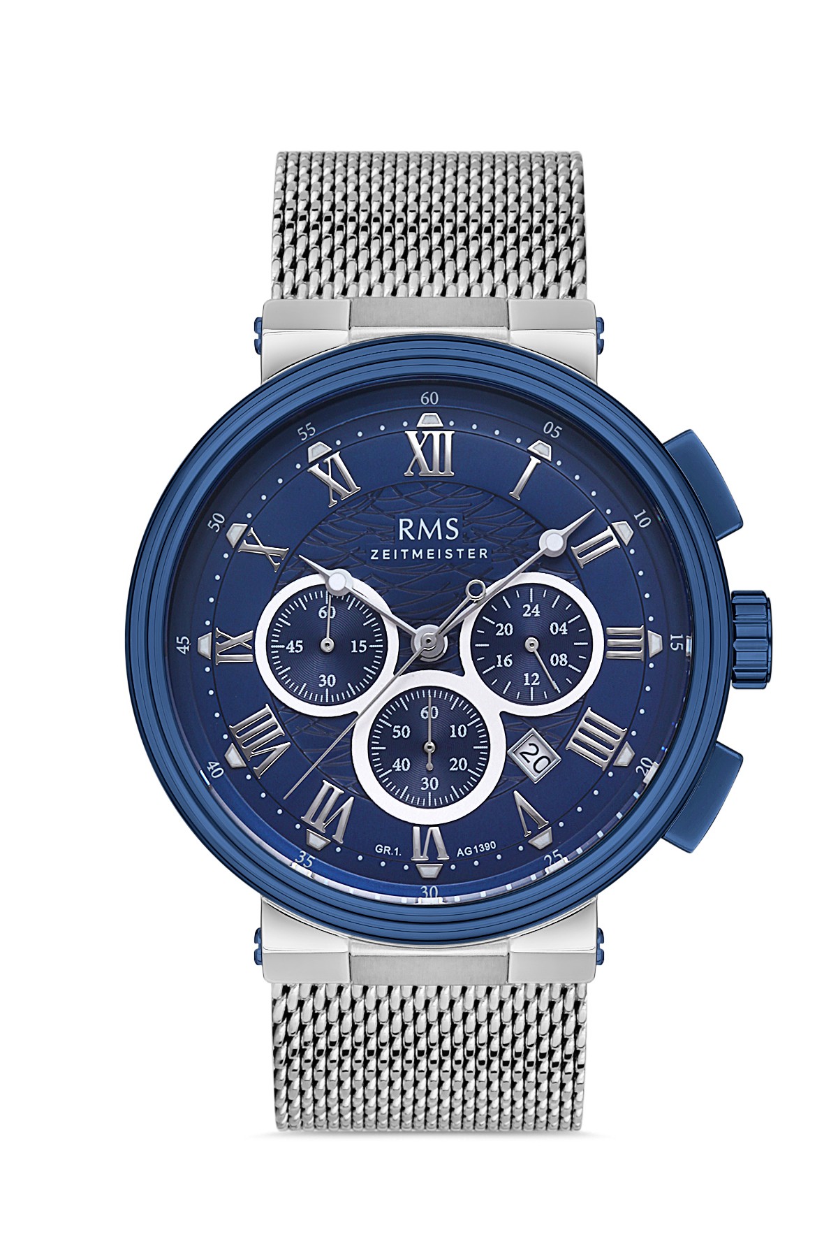 Erkek - Kronometre - Gümüş Mavi̇ - Mavi̇ - Çeli̇k Örme Kordon - 3 Atm - Sertleşti̇ri̇lmi̇ş Mi̇neral Cam - Grand Romanson