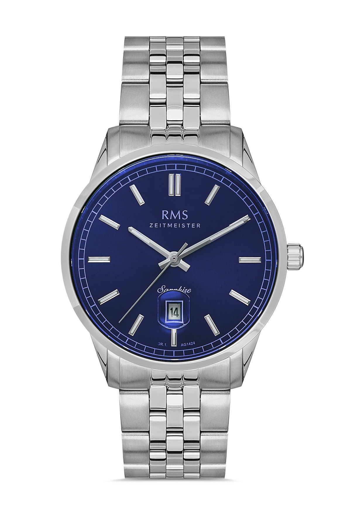Erkek - Takvi̇mli̇ - Gümüş - Mavi̇ - Paslanmaz Masi̇f Çeli̇k - 3 Atm - Safi̇r Cam - Grand Romanson - 41