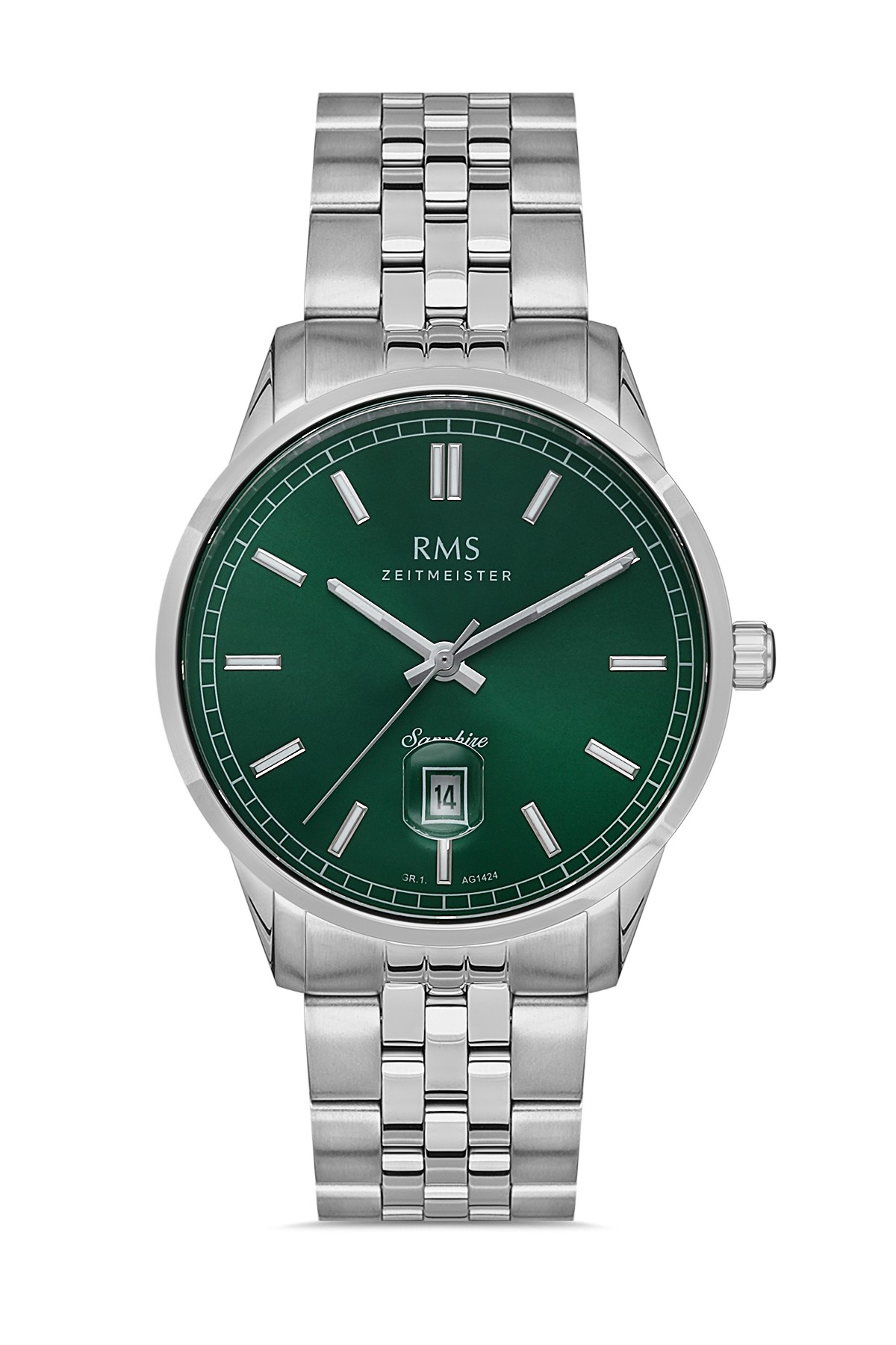 Erkek - Takvi̇mli̇ - Gümüş - Yeşi̇l - Paslanmaz Masi̇f Çeli̇k - 3 Atm - Safi̇r Cam - Grand Romanson - 41