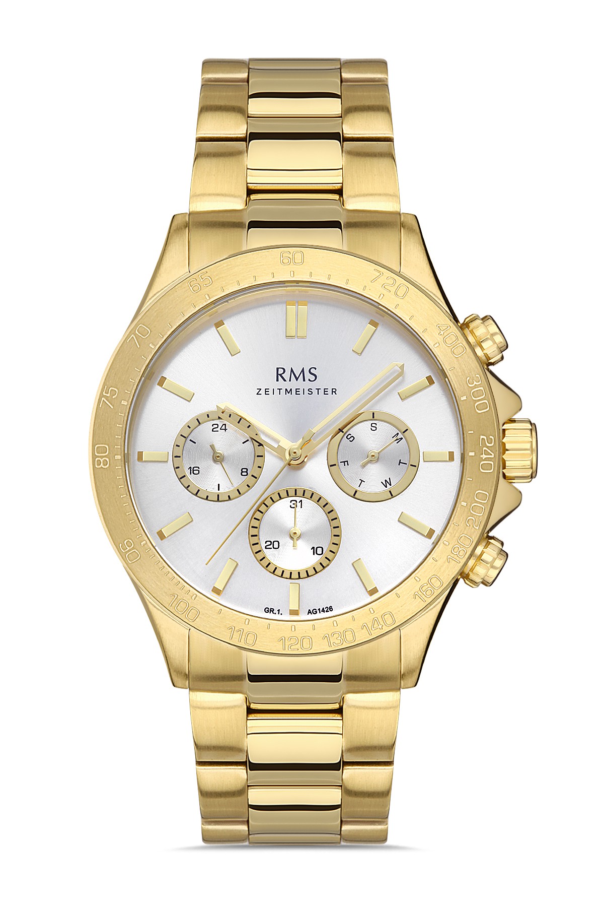 Erkek - Kronometre - Sari - Gümüş - Paslanmaz Masi̇f Çeli̇k - 3 Atm - Sertleşti̇ri̇lmi̇ş Mi̇neral Cam - Grand Romanson