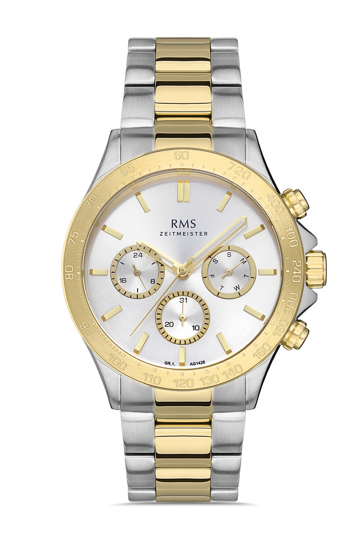 Erkek - Kronometre - Sari Beyaz - Gümüş - Paslanmaz Masi̇f Çeli̇k - 3 Atm - Sertleşti̇ri̇lmi̇ş Mi̇neral Cam - Grand Romanson
