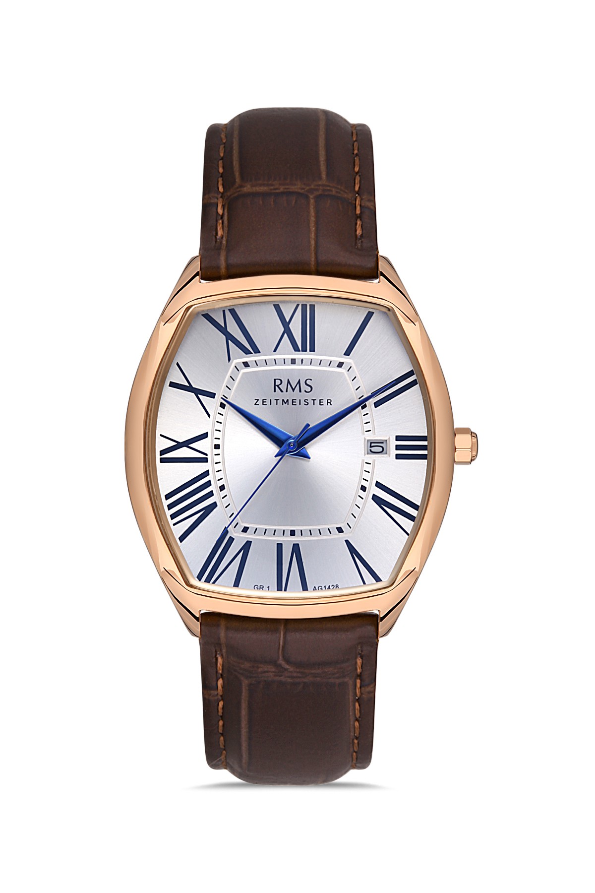 Erkek - Takvi̇mli̇ - Rose - Gümüş - Doğal Deri̇ Kordon - Kahverengi̇ - 3 Atm - Sertleşti̇ri̇lmi̇ş Mi̇neral Cam - Grand Romanson
