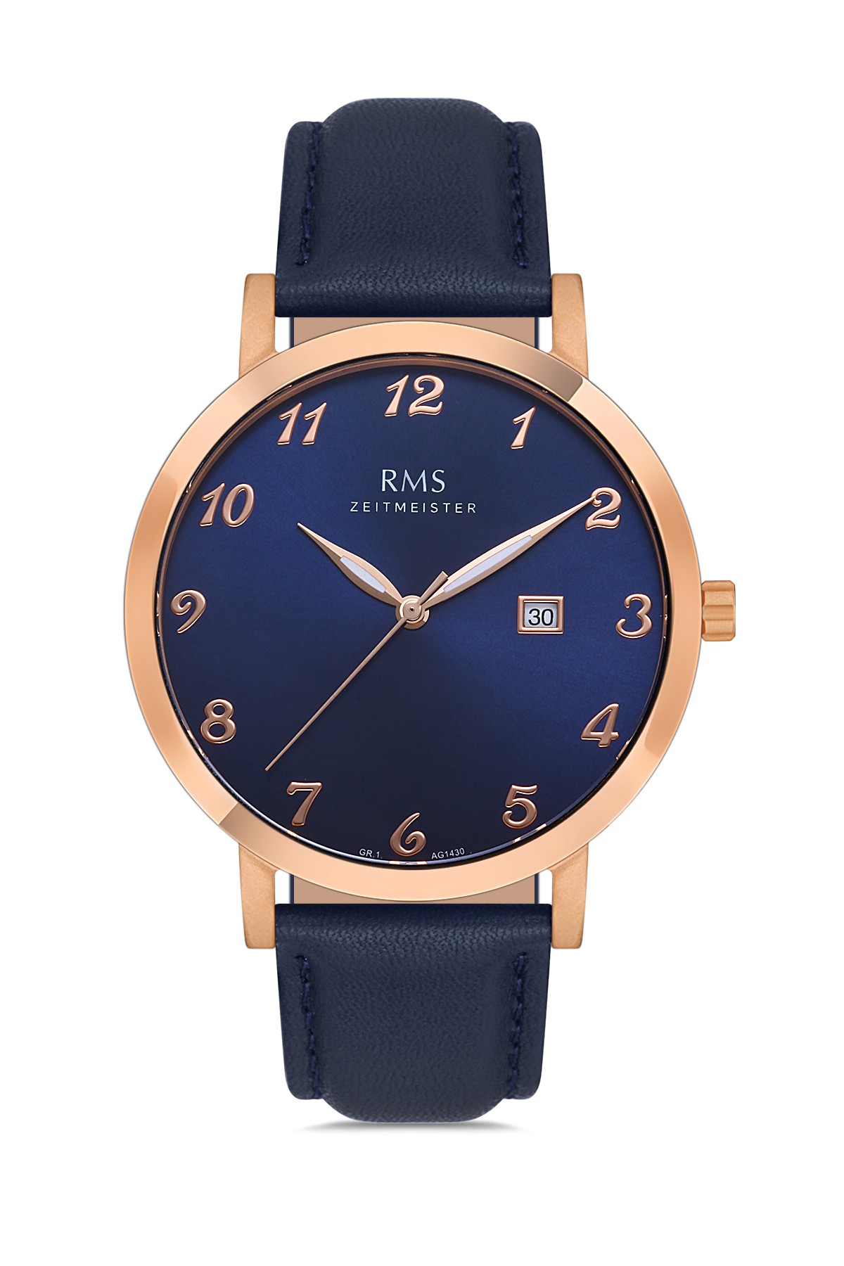 Erkek - Takvi̇mli̇ - Rose - Mavi̇ - Doğal Deri̇ Kordon - Mavi̇ - 3 Atm - Sertleşti̇ri̇lmi̇ş Mi̇neral Cam - Grand Romanson