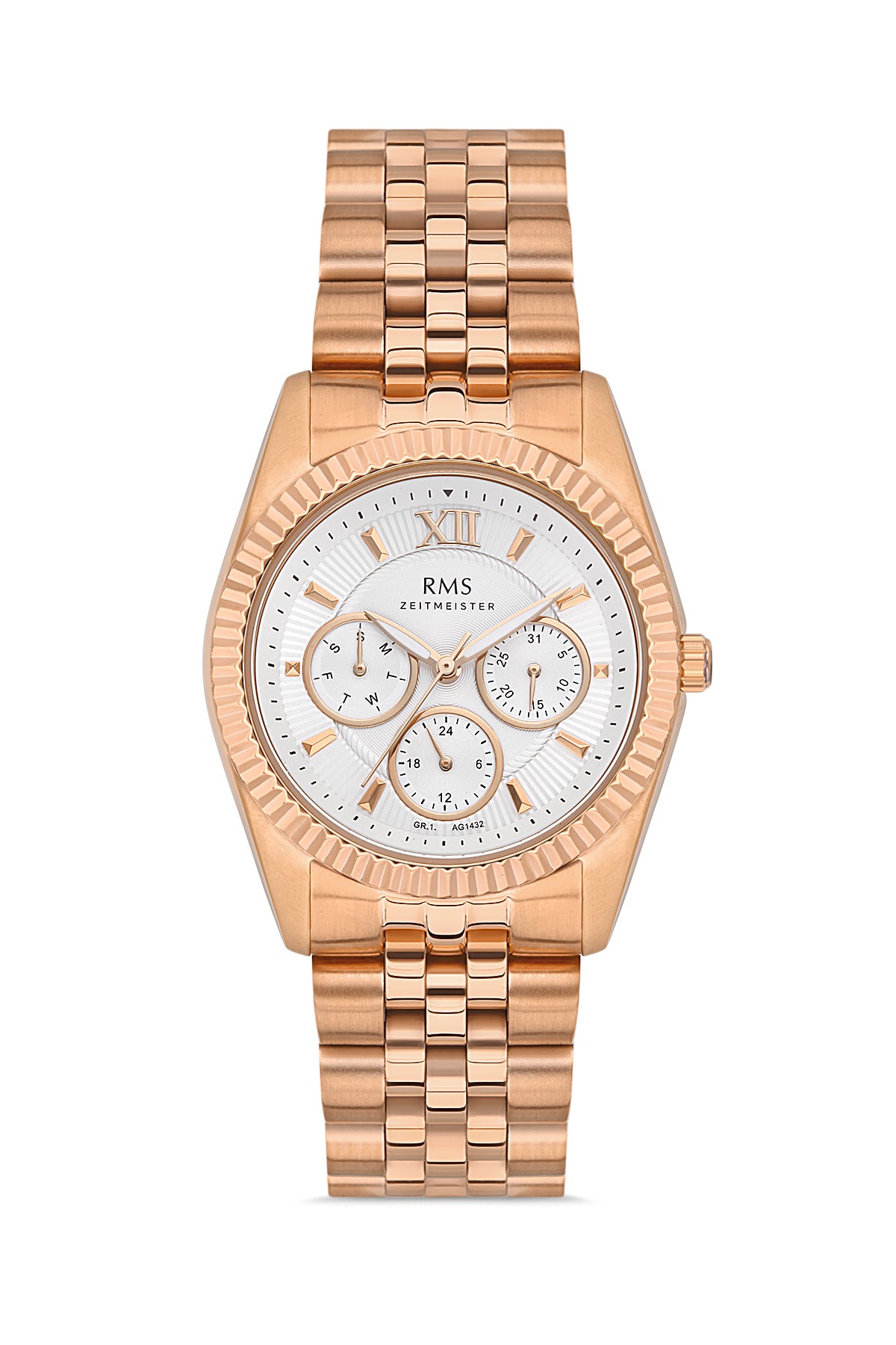 Kadın - Multi̇ Fonksi̇yon - Rose - Gümüş - Paslanmaz Masi̇f Çeli̇k - 3 Atm - Sertleşti̇ri̇lmi̇ş Mi̇neral Cam - Grand Romanson - 35
