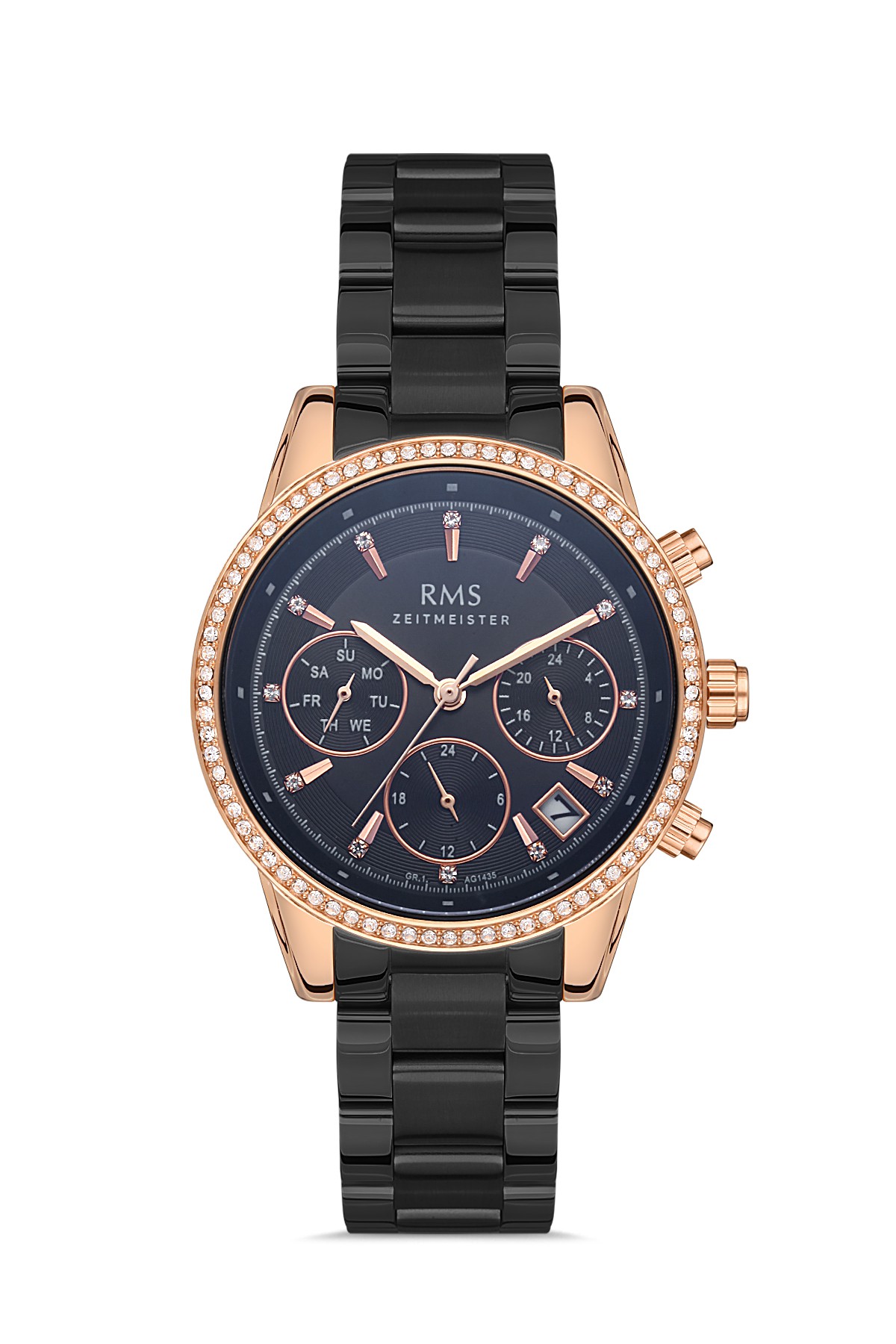 Kadın - Multi̇ Fonksi̇yon - Rose Si̇yah - Si̇yah - Paslanmaz Masi̇f Çeli̇k - 3 Atm - Sertleşti̇ri̇lmi̇ş Mi̇neral Cam - Grand Romanson