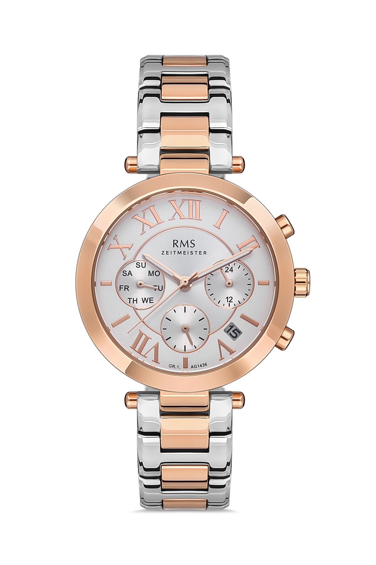 Kadın - Multi̇ Fonksi̇yon - Rose Beyaz - Gümüş - Paslanmaz Masi̇f Çeli̇k - 3 Atm - Sertleşti̇ri̇lmi̇ş Mi̇neral Cam - Grand Romanson