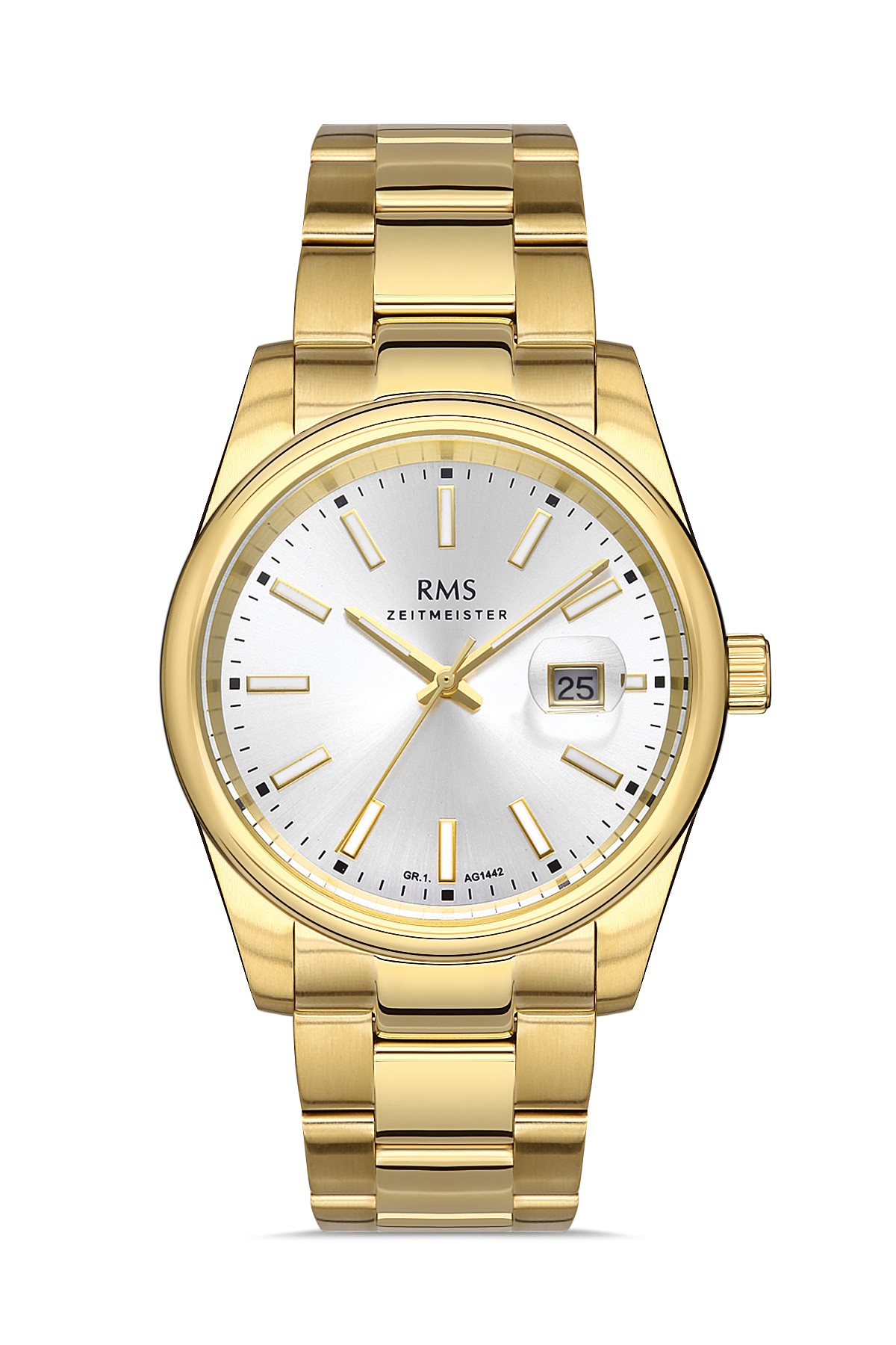 Erkek - Takvi̇mli̇ - Sari - Gümüş - Paslanmaz Masi̇f Çeli̇k - 3 Atm - Sertleşti̇ri̇lmi̇ş Mi̇neral Cam - Grand Romanson