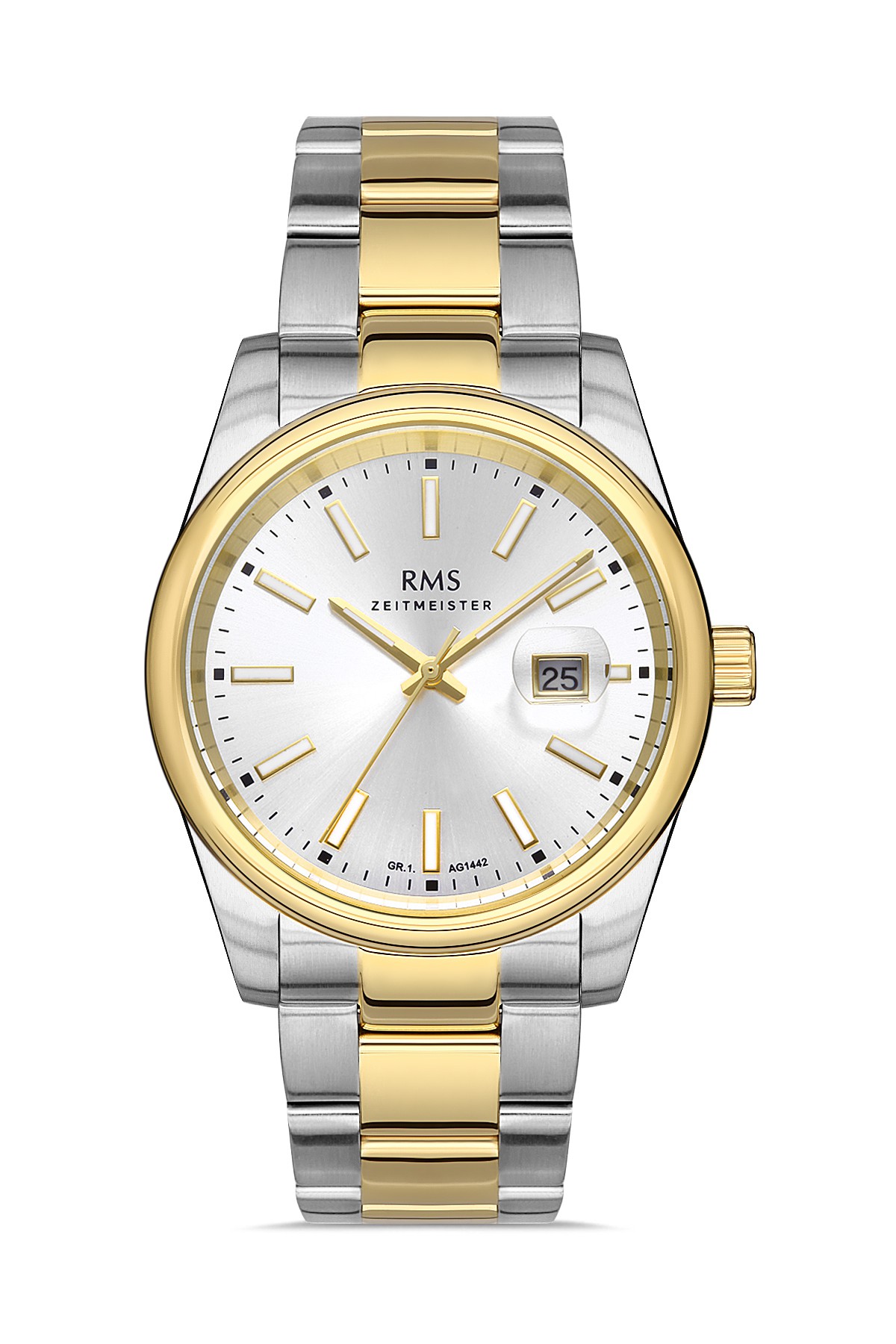 Erkek - Takvi̇mli̇ - Sari Beyaz - Gümüş - Paslanmaz Masi̇f Çeli̇k - 3 Atm - Sertleşti̇ri̇lmi̇ş Mi̇neral Cam - Grand Romanson