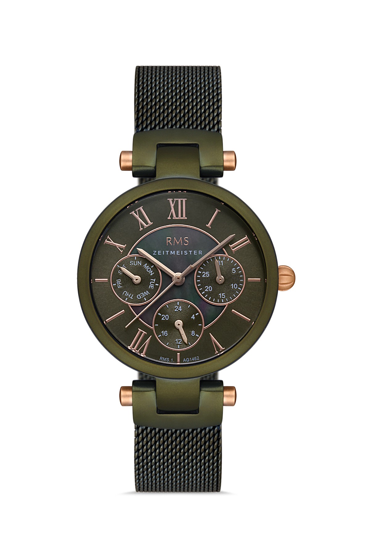 Kadın - Multi̇ Fonksi̇yon - Yeşi̇l - Yeşi̇l - Çeli̇k Örme Kordon - 3 Atm - Sertleşti̇ri̇lmi̇ş Mi̇neral Cam - Grand Romanson