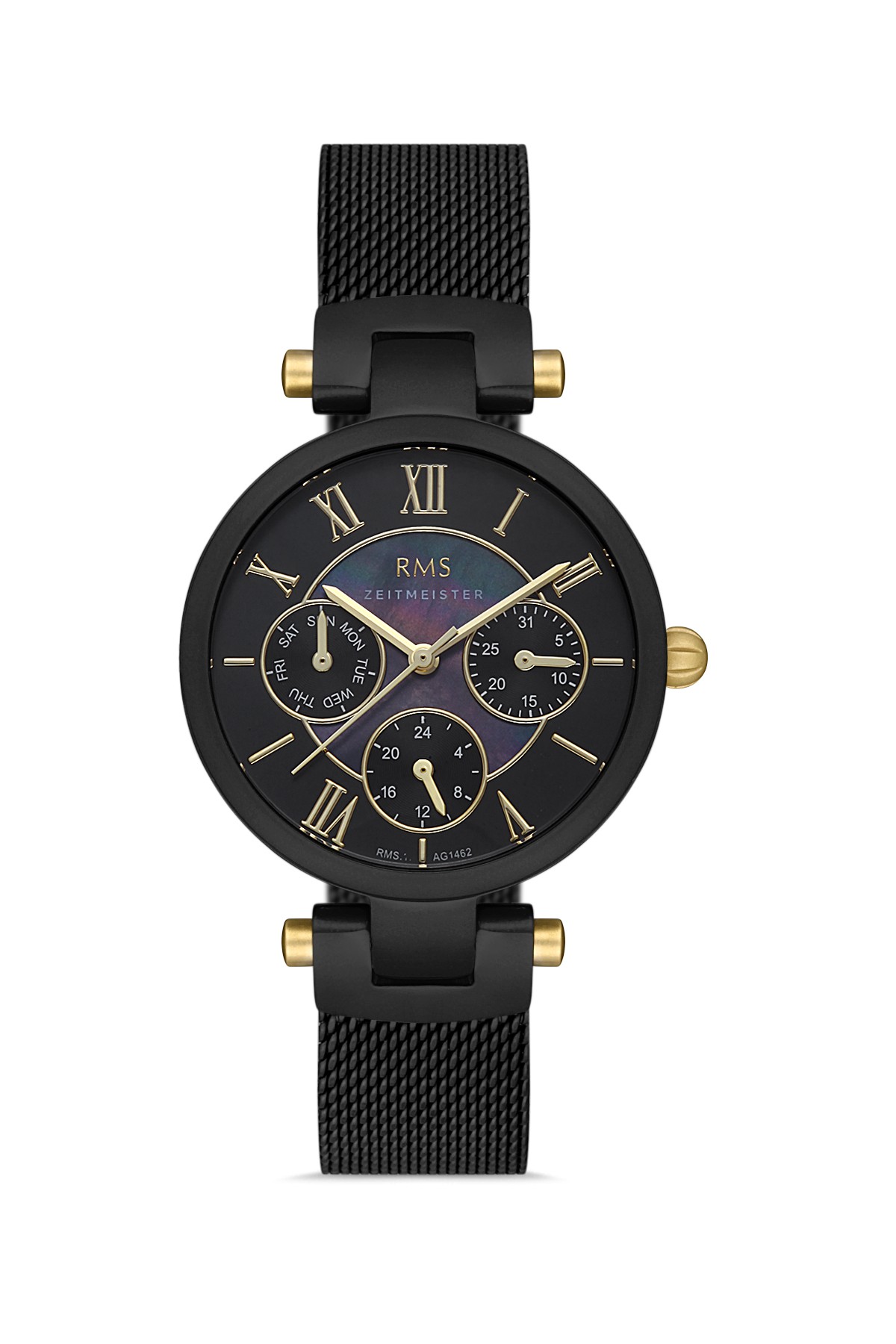 Kadın - Multi̇ Fonksi̇yon - Si̇yah - Si̇yah - Çeli̇k Örme Kordon - 3 Atm - Sertleşti̇ri̇lmi̇ş Mi̇neral Cam - Grand Romanson