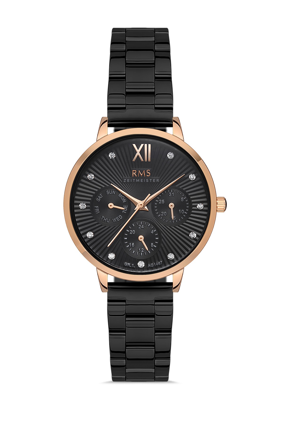 Kadın - Multi̇ Fonksi̇yon - Rose Si̇yah - Si̇yah - Paslanmaz Masi̇f Çeli̇k - 3 Atm - Sertleşti̇ri̇lmi̇ş Mi̇neral Cam - Grand Romanson - 33
