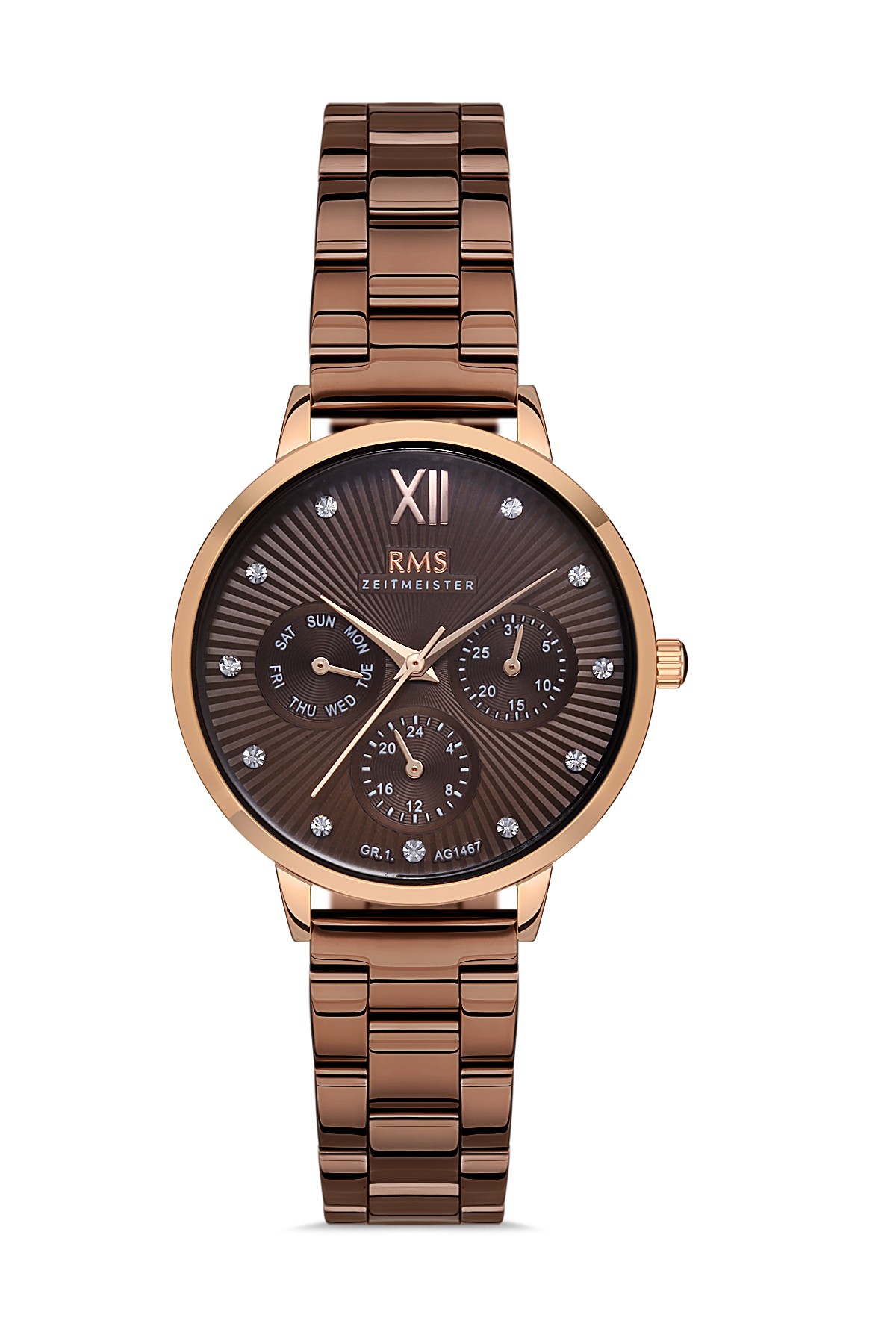 Kadın - Multi̇ Fonksi̇yon - Rose Kahverengi̇ - Kahverengi̇ - Paslanmaz Masi̇f Çeli̇k - 3 Atm - Sertleşti̇ri̇lmi̇ş Mi̇neral Cam - Grand Romanson - 33