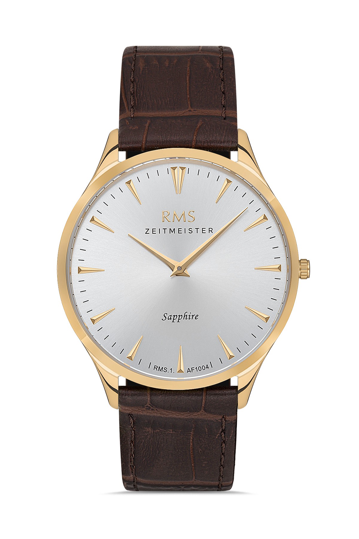 Erkek - Düz - Sari - Gümüş - Doğal Deri̇ Kordon - Kahverengi̇ - 3 Atm - Sertleşti̇ri̇lmi̇ş Mi̇neral Cam - Grand Romanson - 41
