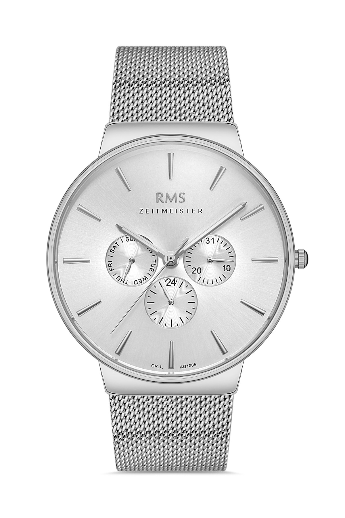 Erkek - Multi̇ Fonksi̇yon - Gümüş - Gümüş - Çeli̇k Örme Kordon - 3 Atm - Sertleşti̇ri̇lmi̇ş Mi̇neral Cam - Grand Romanson
