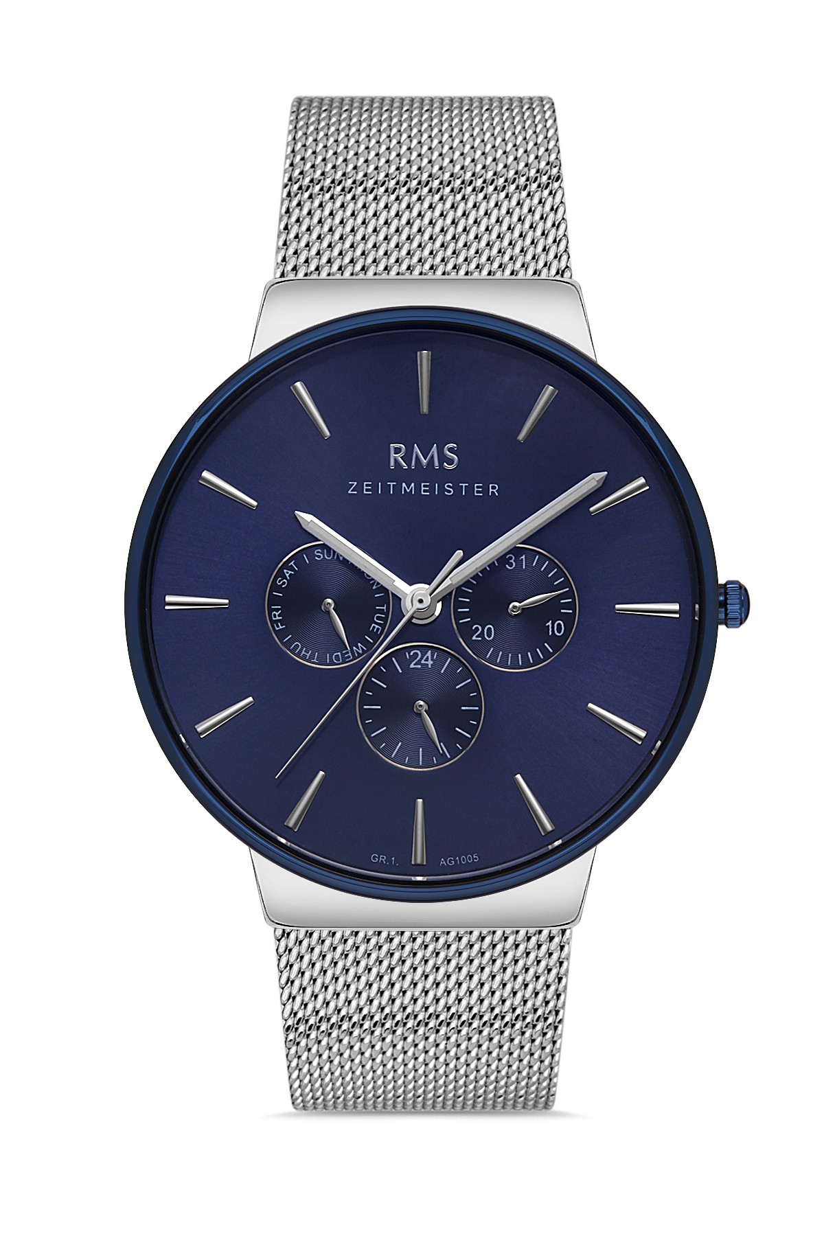Erkek - Multi̇ Fonksi̇yon - Gümüş Mavi̇ - Mavi̇ - Çeli̇k Örme Kordon - 3 Atm - Sertleşti̇ri̇lmi̇ş Mi̇neral Cam - Grand Romanson